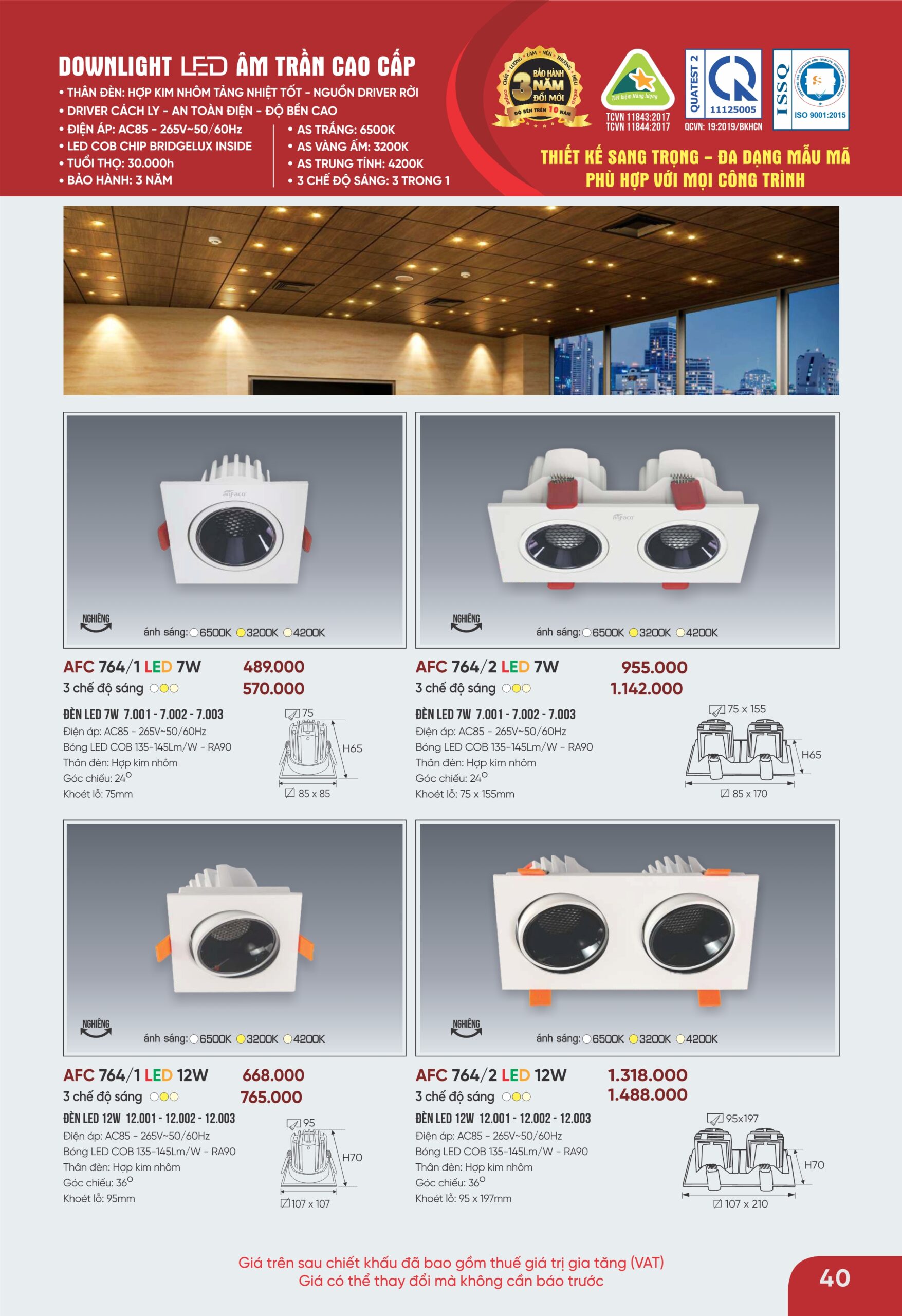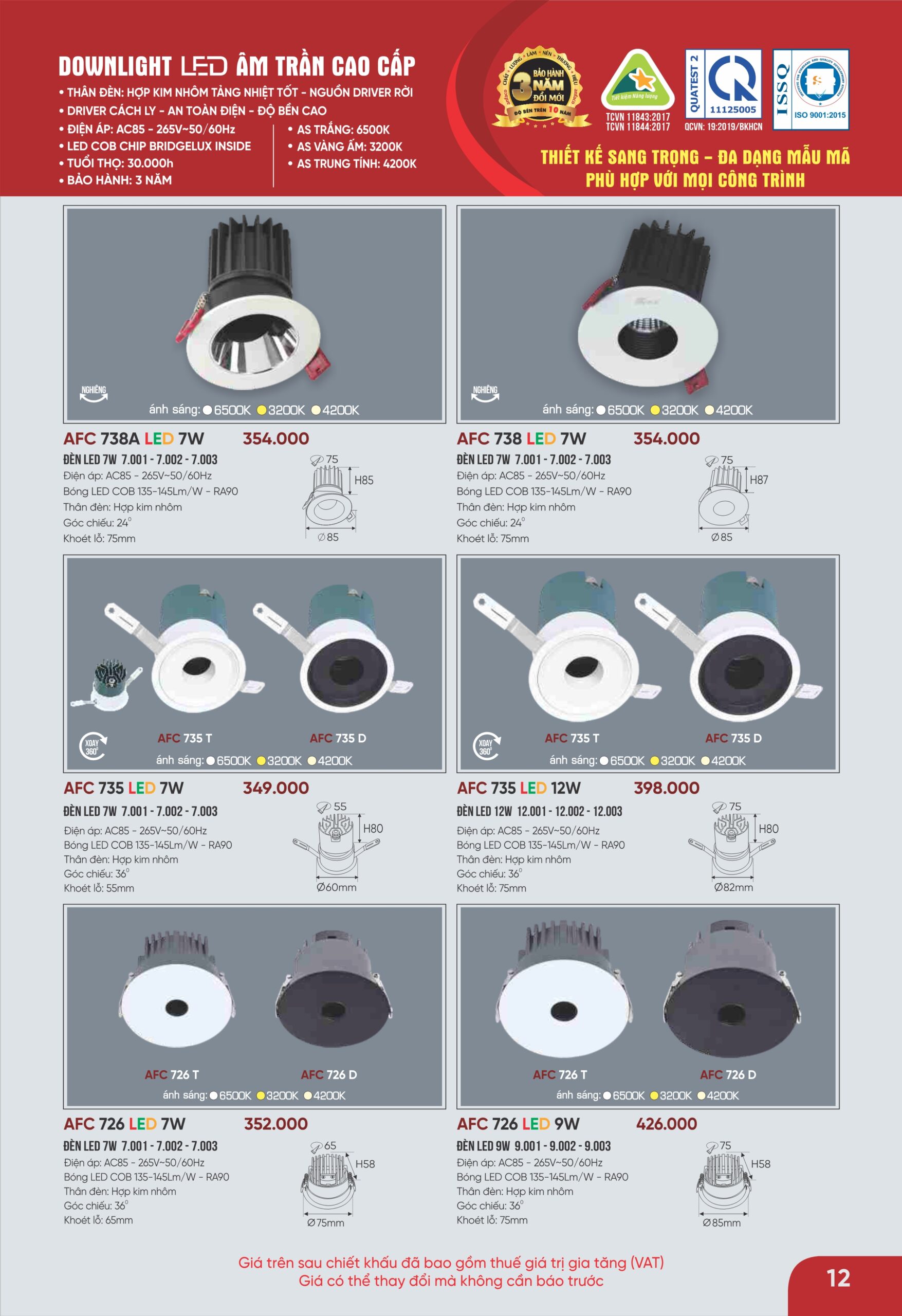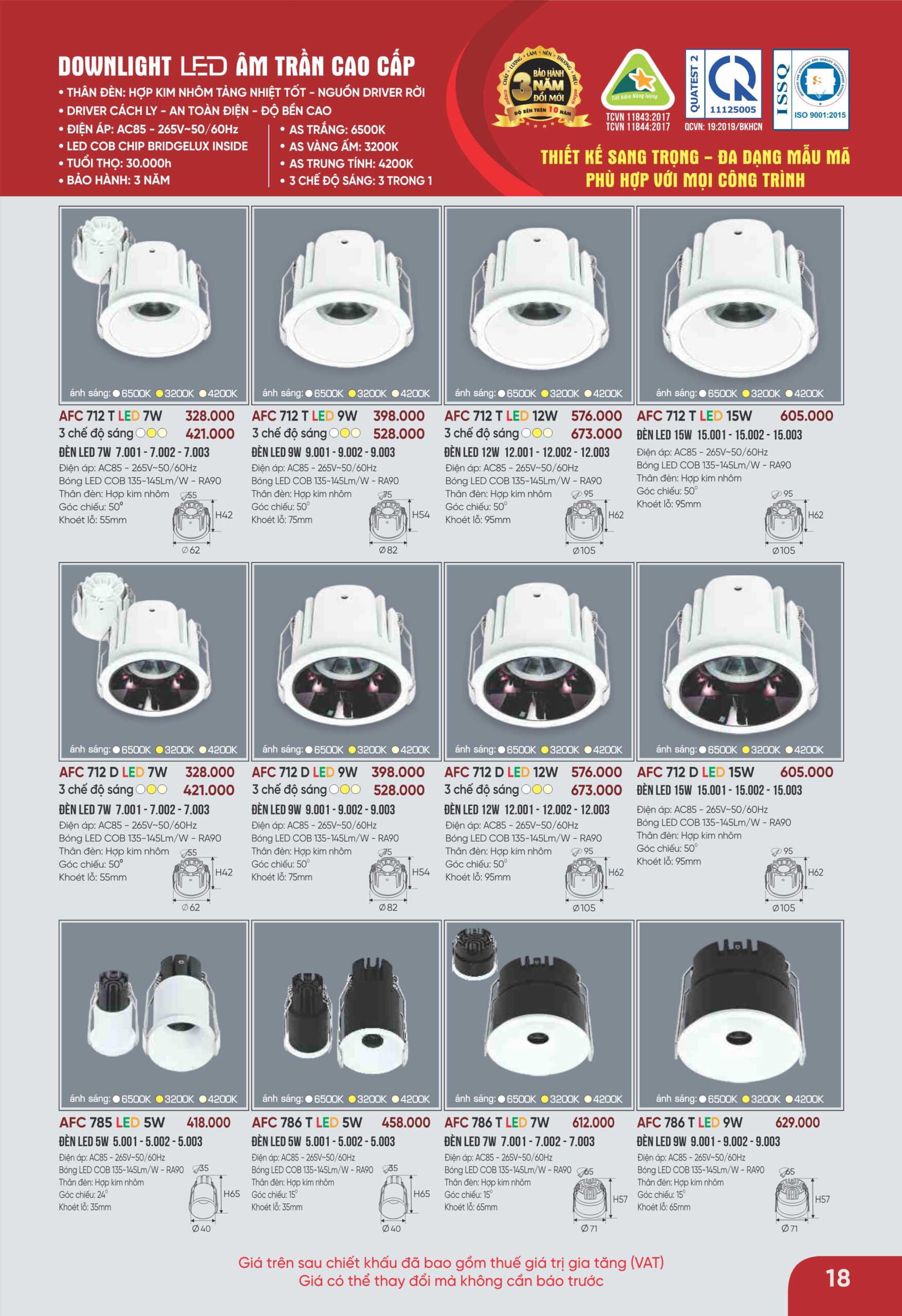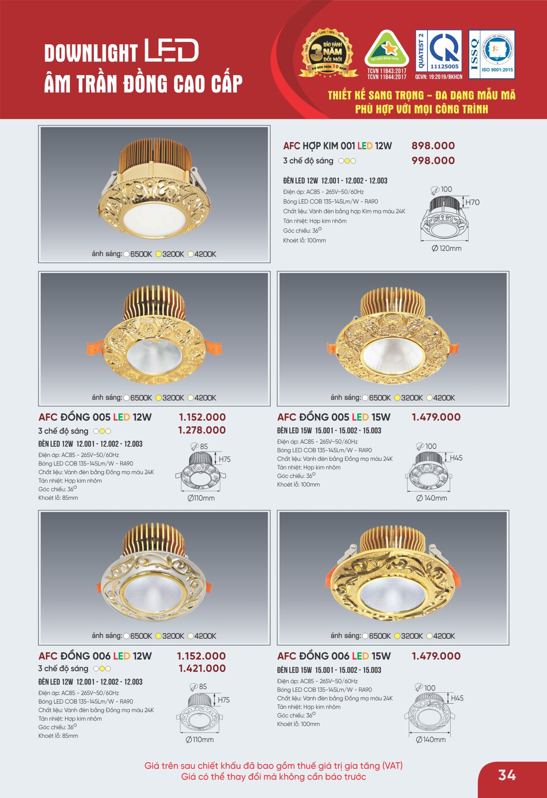 Đèn âm trần Anfaco 2024-2025 với Chipled chất lượng cao: thanh đồng dây vàng (các dòng downlight) và Cob chips Bridgelus của Mỹ (các dòng spotlight) đèn âm trần Anfaco đã khẳng định thương hiệu của mình trên thị trường đèn chiếu sáng cao cấp