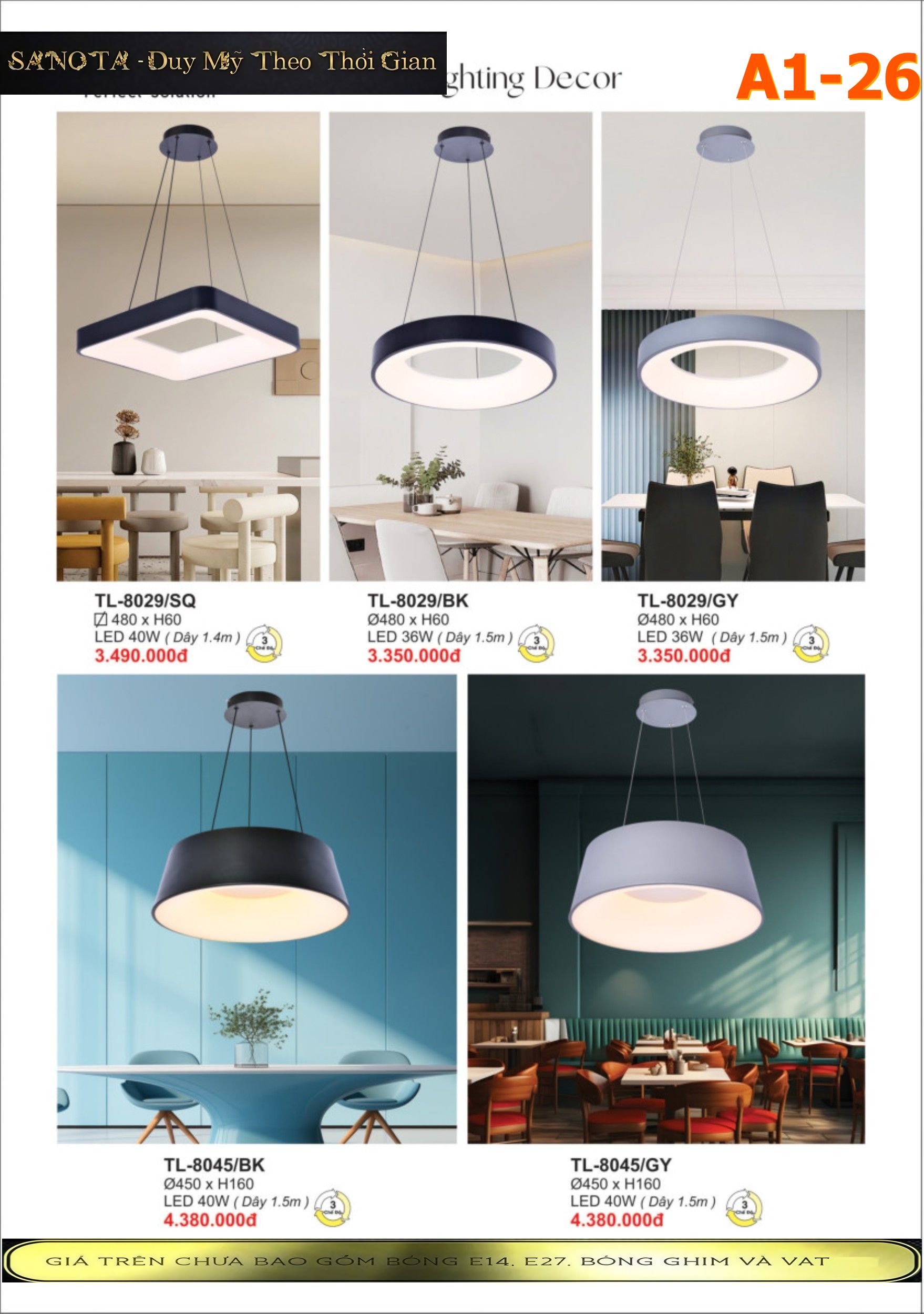 Các mẫu đèn thả văn phòng thường có thiết kế thanh mảnh, gọn nhẹ, với các đường nét tinh tế phù hợp cho không gian làm việc.