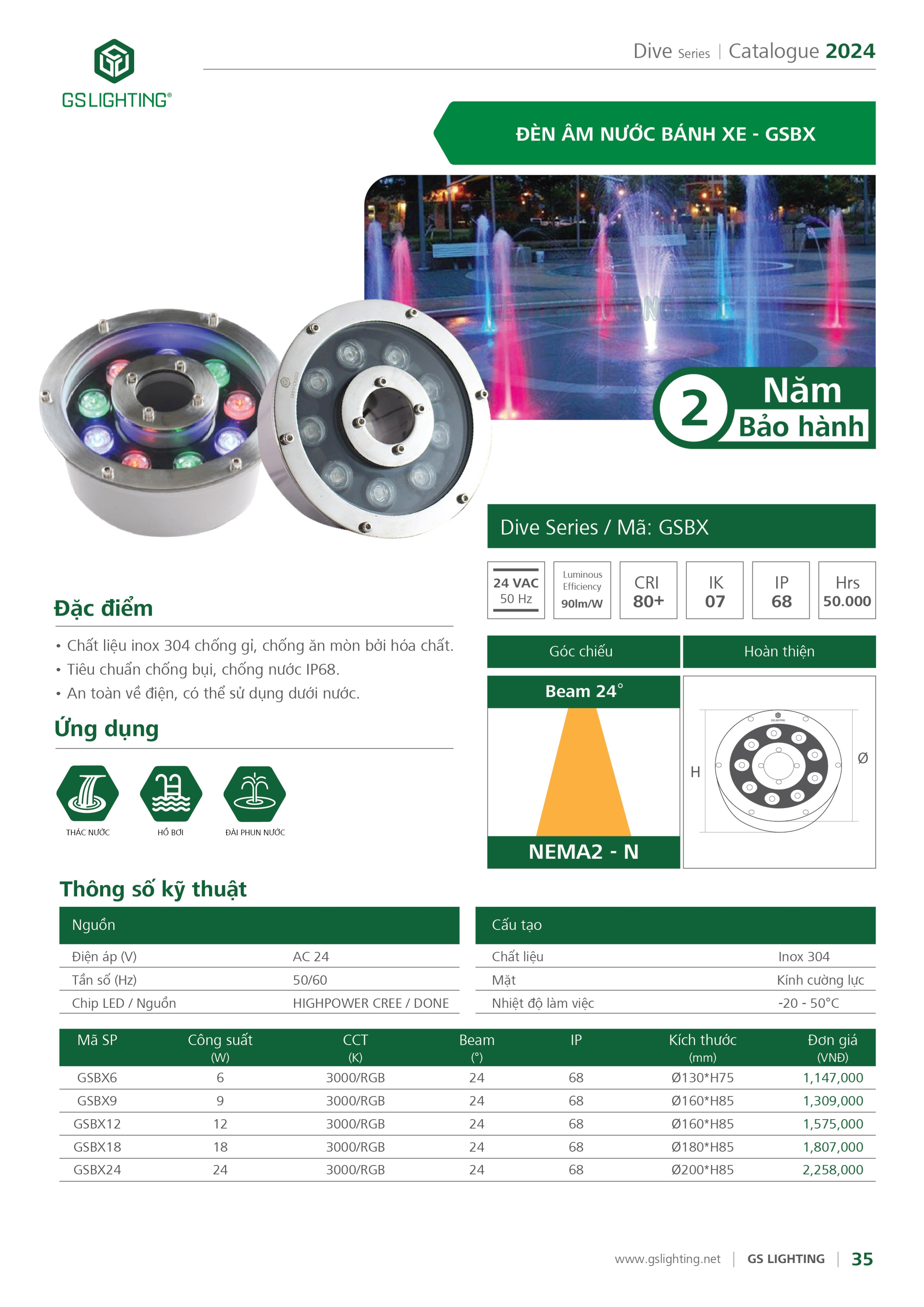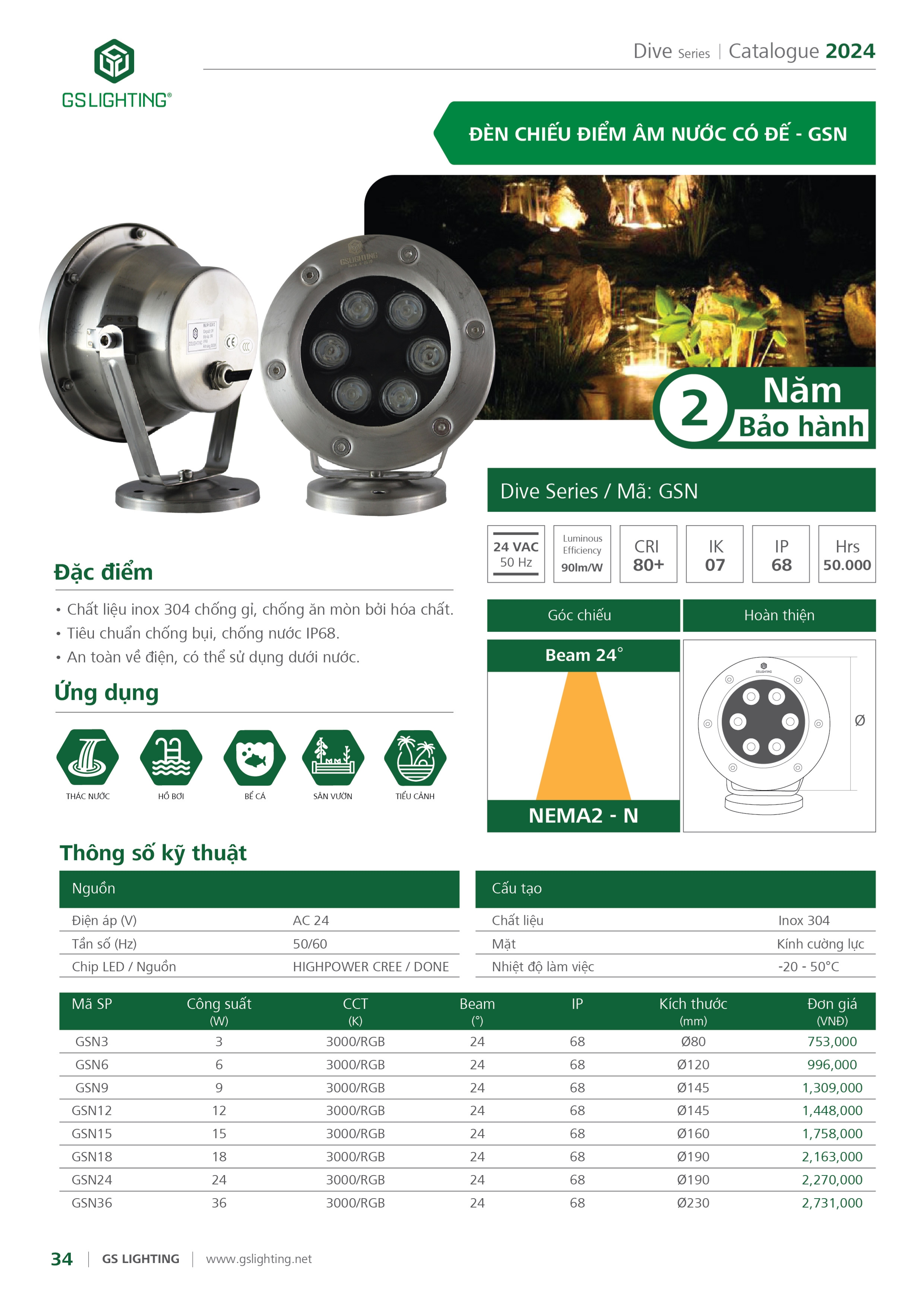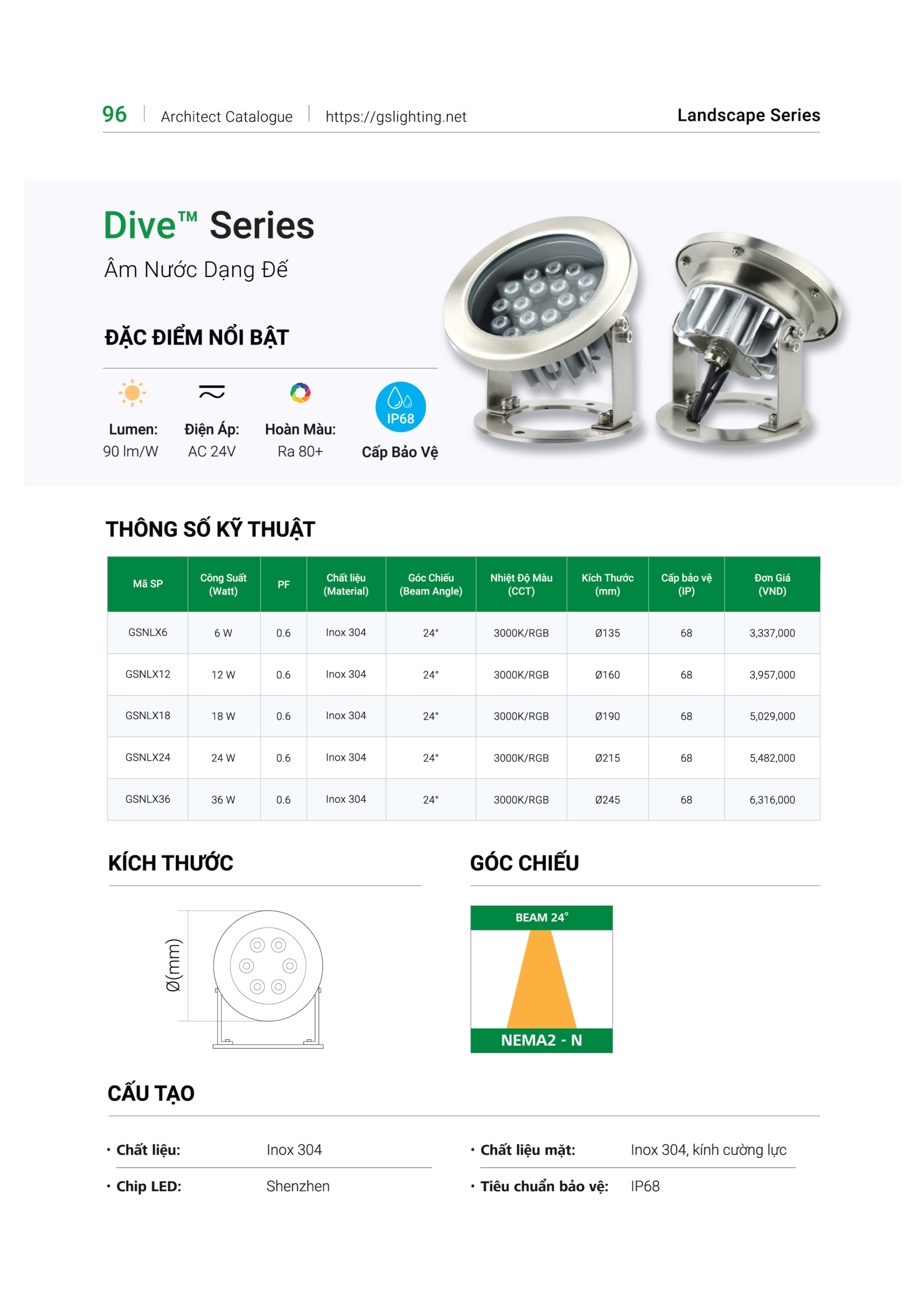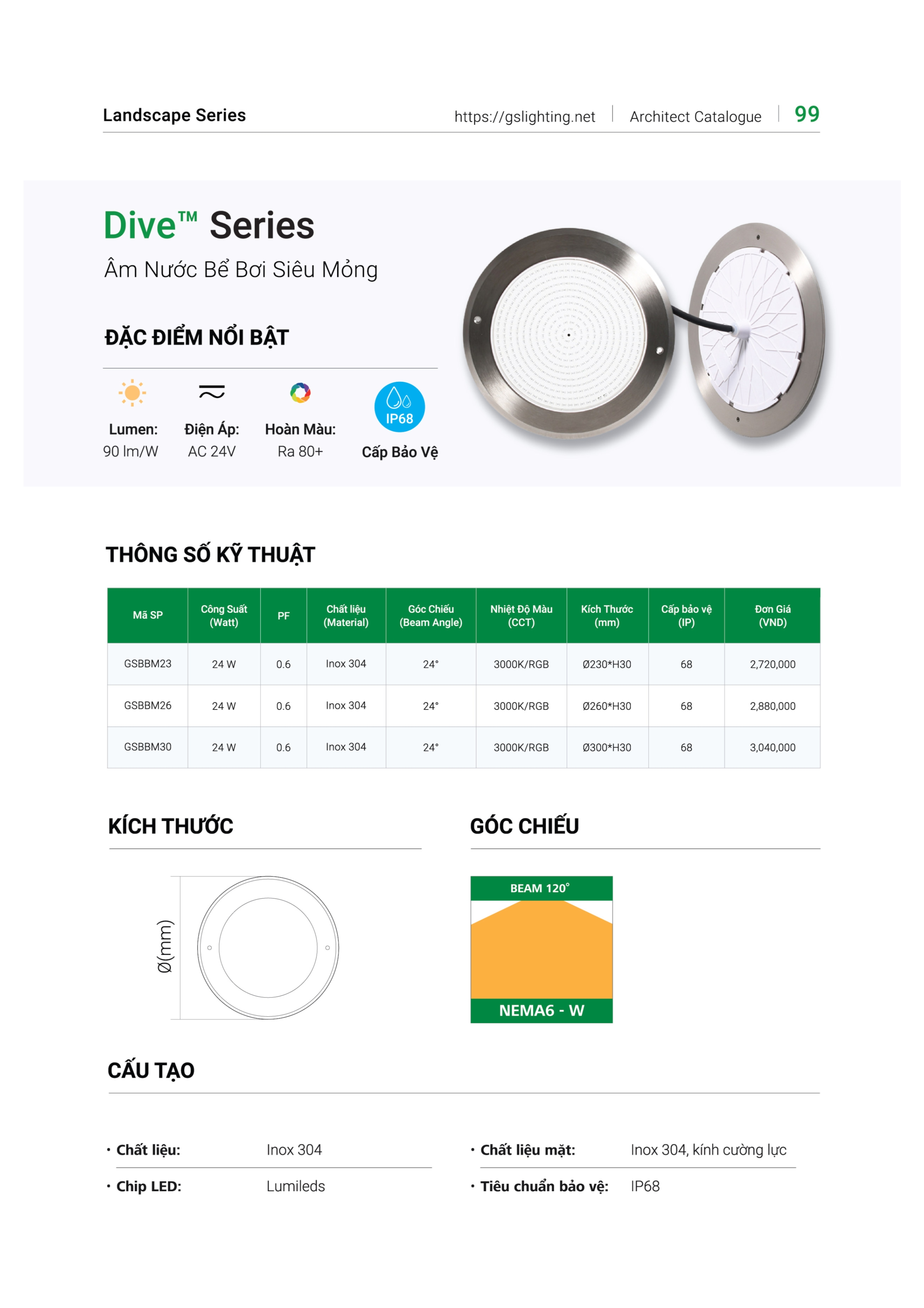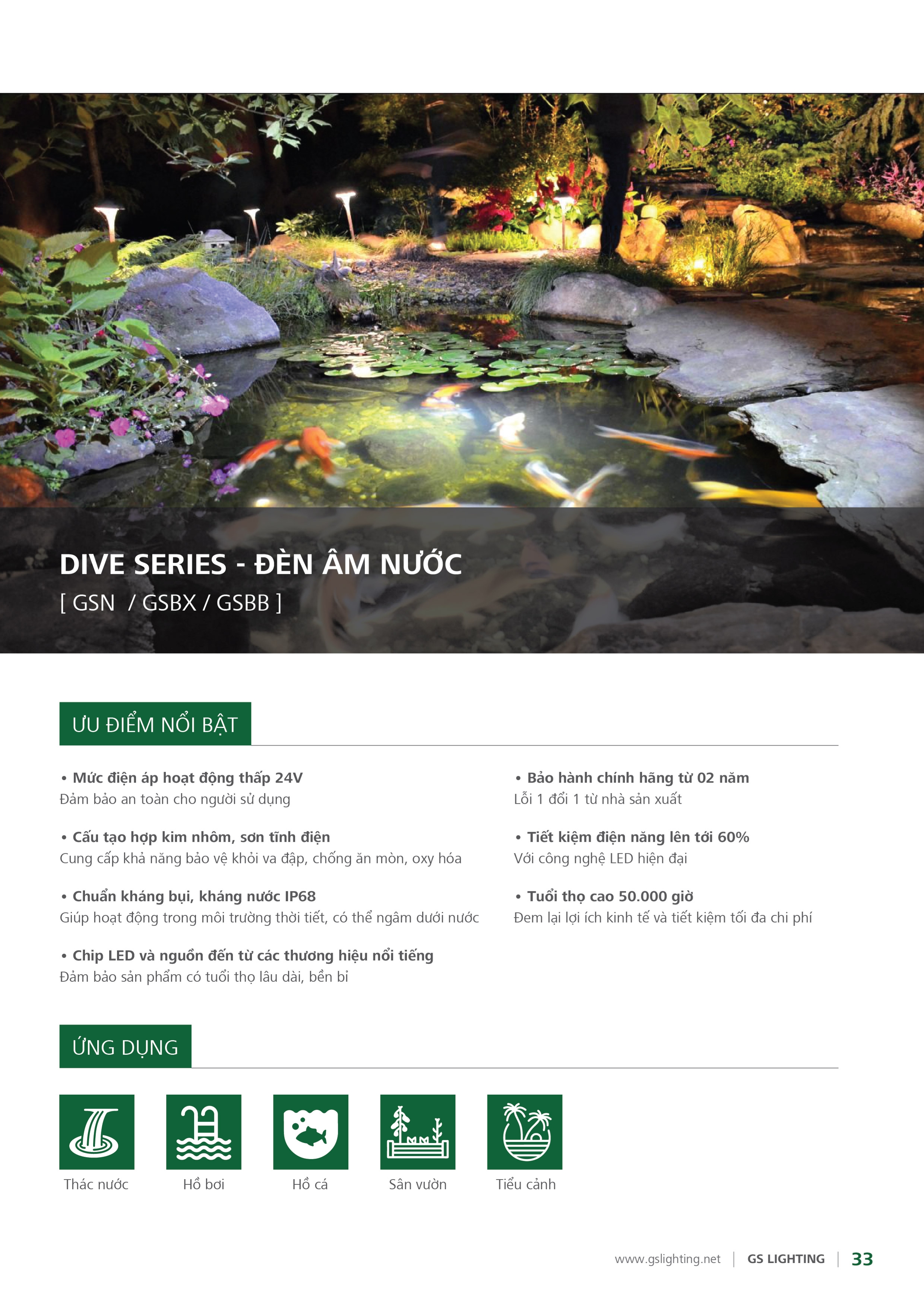 Chống nước tuyệt đối: Đèn âm nước được thiết kế với tiêu chuẩn chống nước cao nhất, đảm bảo hoạt động ổn định trong môi trường ẩm ướt và ngập nước.