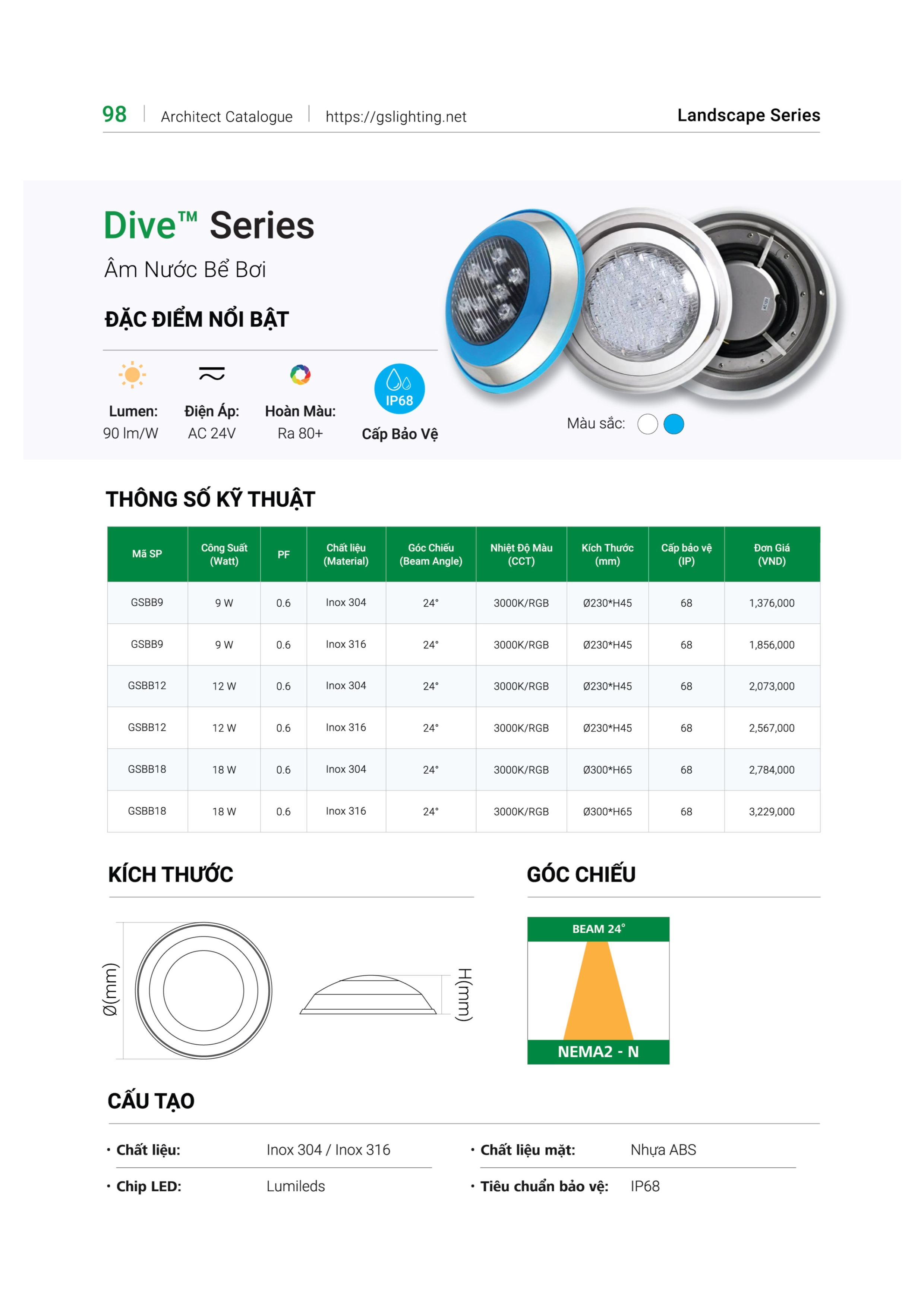 Tiêu chuẩn chống nước: Đảm bảo đèn có tiêu chuẩn chống nước cao nhất (IP68).