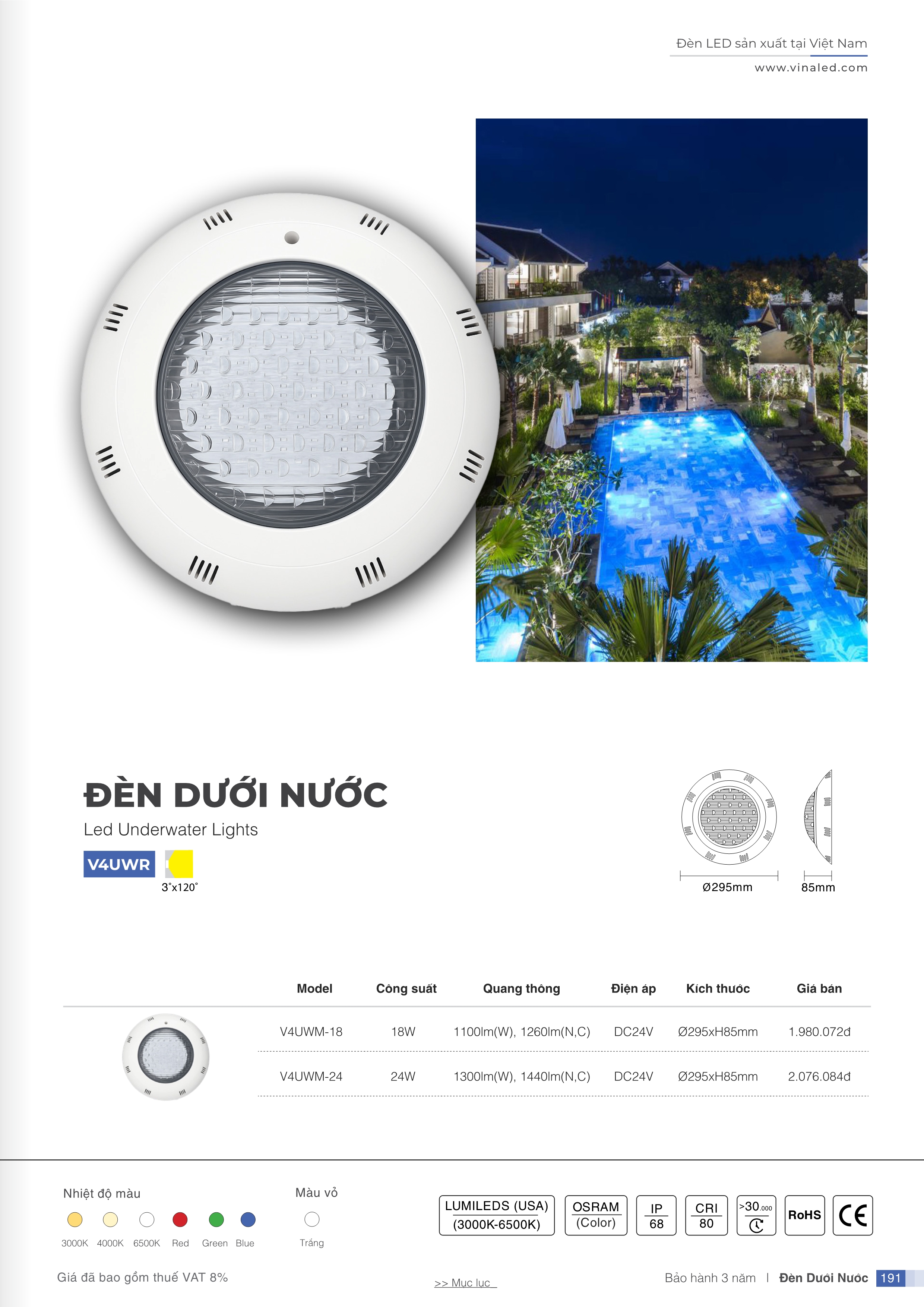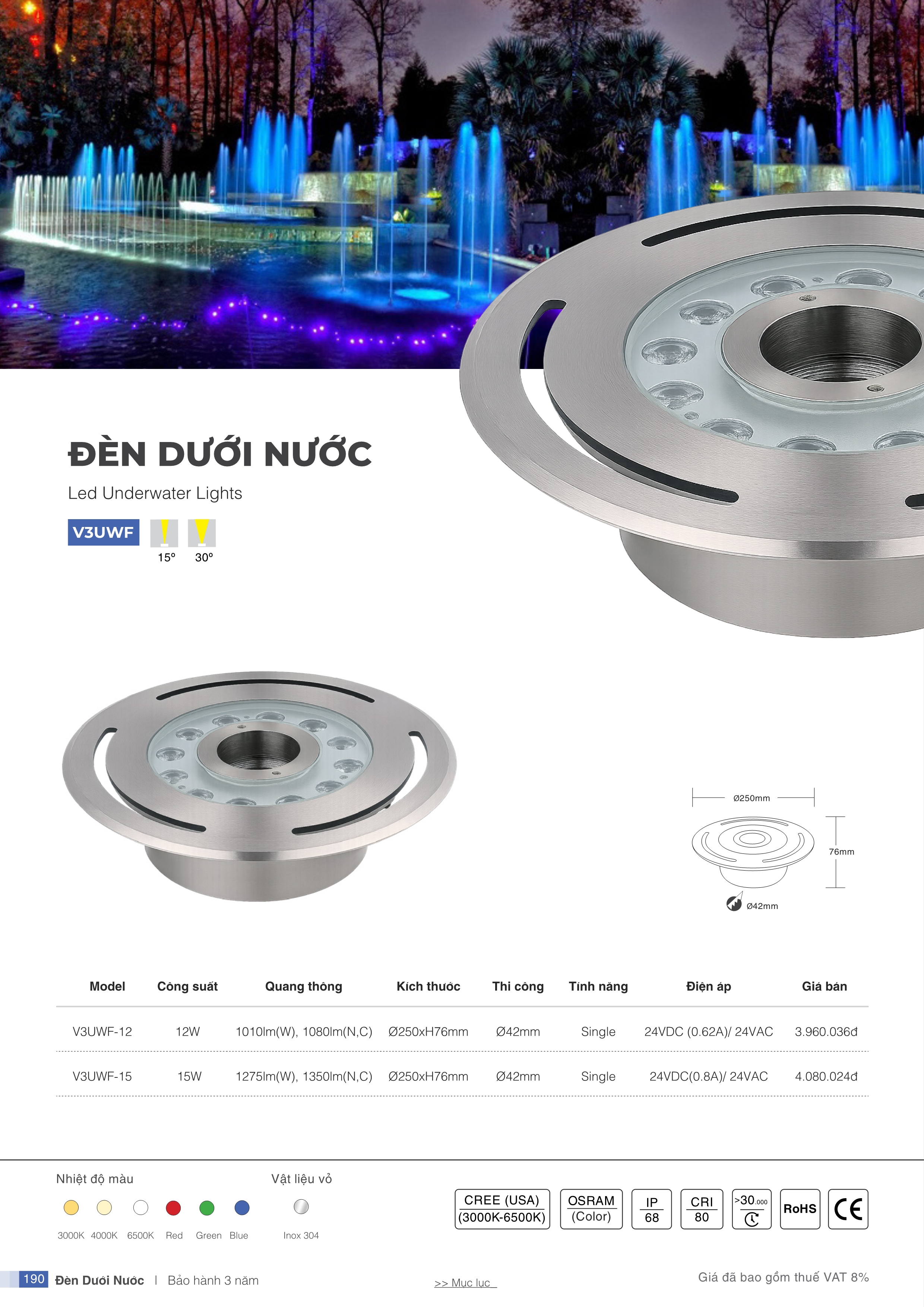 Đa dạng màu sắc: Đèn âm nước có nhiều màu sắc ánh sáng khác nhau, từ các màu cơ bản đến màu RGB, giúp bạn tạo ra những hiệu ứng ánh sáng độc đáo.