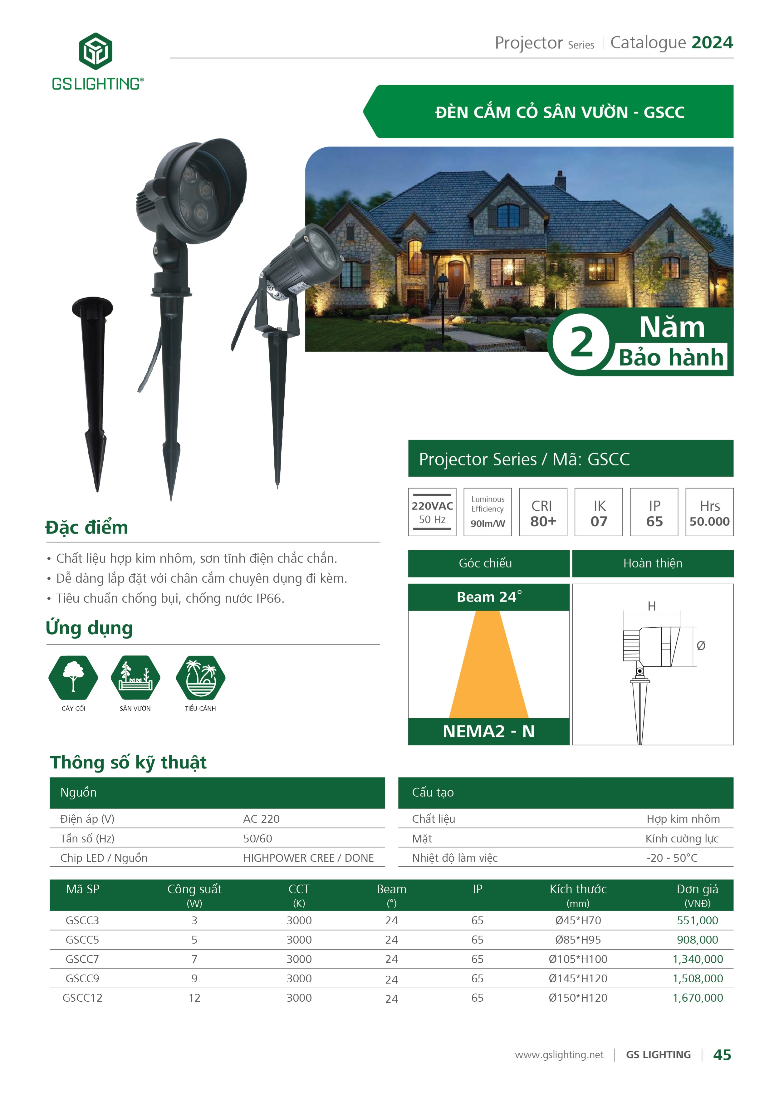 Đèn chiếu cây, ghim cỏ với ánh sáng dịu dàng làm tôn lên những chi tiết nhỏ của từng chiếc lá hay những nhánh cỏ.