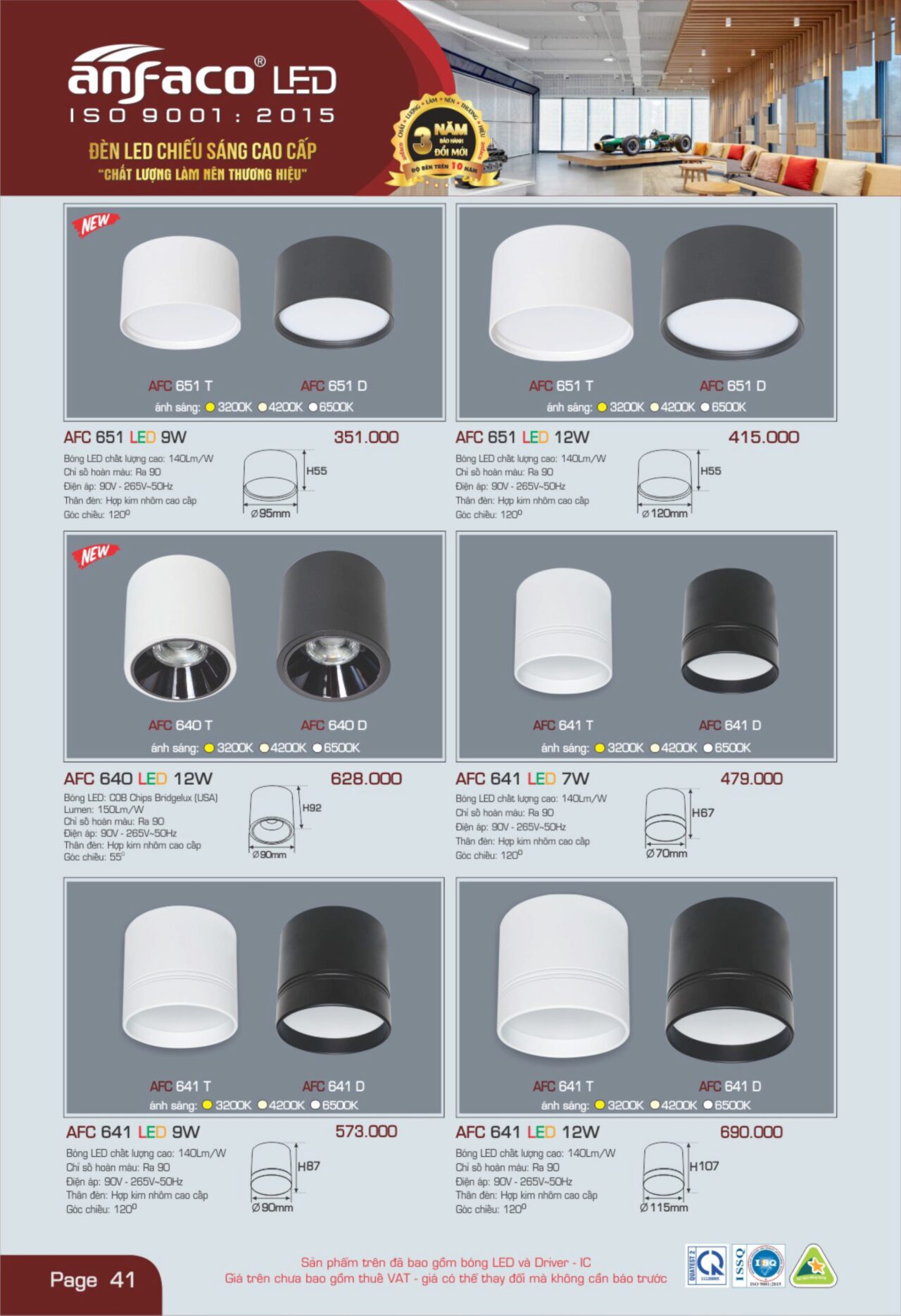 Catalogue đèn lon – ốp nổi Anfaco T9.2025