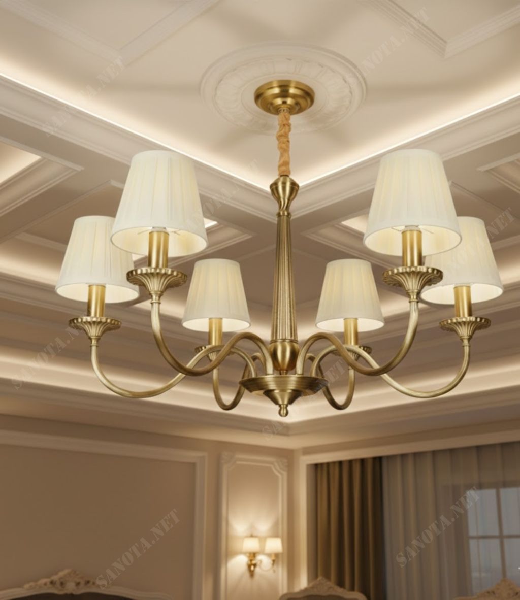 Đèn chùm đồng chao vải là lựa chọn hoàn hảo cho những không gian nội thất yêu cầu sự sang trọng, tinh tế nhưng vẫn giữ được nét ấm áp và gần gũi. Không chỉ đơn thuần là thiết bị chiếu sáng, mẫu đèn này còn đóng vai trò như một điểm nhấn trang trí đắt giá. Góp phần nâng tầm thẩm mỹ cho toàn bộ căn phòng.