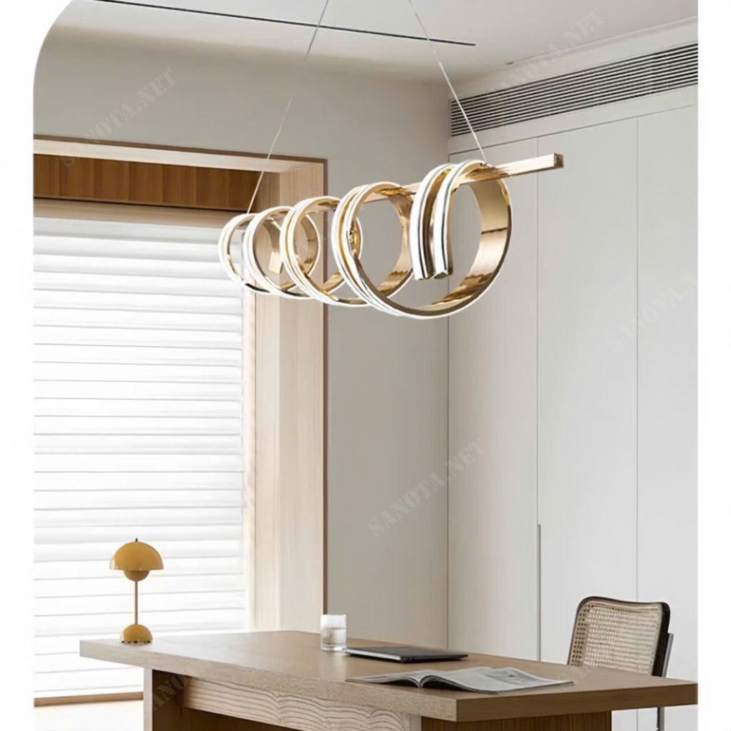 Trong thiết kế nội thất hiện đại, đèn chùm xoắn lượn nghệ thuật không chỉ là nguồn sáng. Mà còn là tuyên ngôn về phong cách và gu thẩm mỹ của gia chủ. Đèn chùm với hình dáng độc đáo, tựa như một dải lụa mềm mại lượn sóng giữa không trung. Chính là lựa chọn hoàn hảo để kiến tạo một không gian làm việc hoặc sinh hoạt sang trọng và đầy cảm hứng.