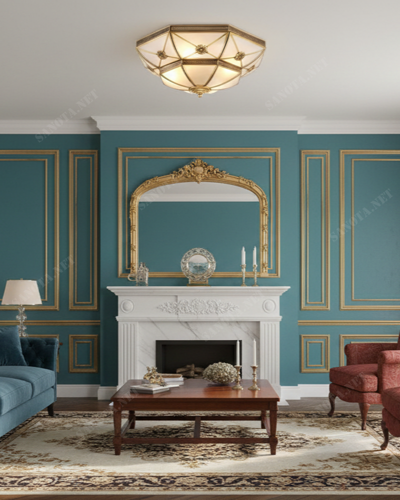 Đèn ốp trần đồng cổ điển sang trọng, một kiệt tác ánh sáng mang đậm chất nghệ thuật và đẳng cấp. Được chế tác từ đồng nguyên chất, chiếc đèn này không chỉ thắp sáng không gian mà còn là điểm nhấn kiến trúc, nâng tầm vẻ đẹp uy nghi và cổ kính cho ngôi nhà của bạn.