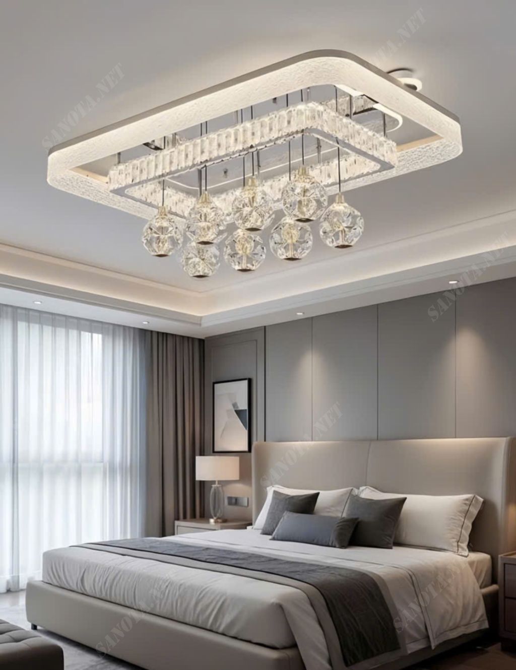 Đèn ốp trần pha lê kết hợp quả cầu hiện đại SNT5837