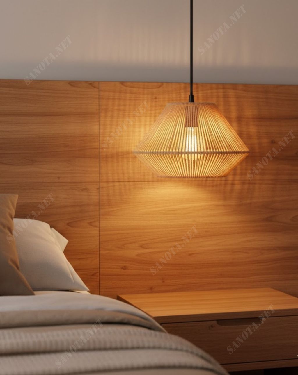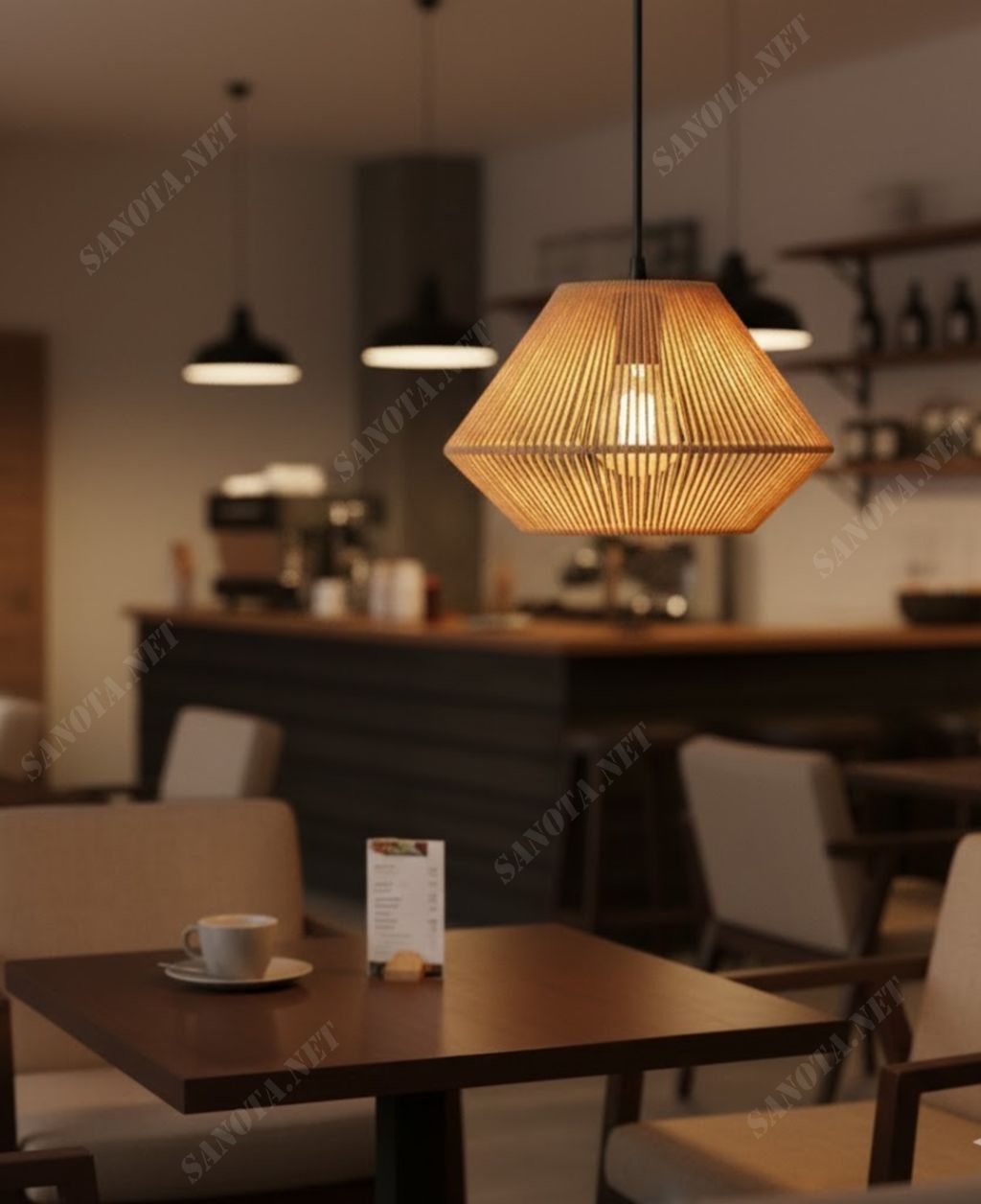 Khi treo trên bàn ăn, góc trà, quầy bar, phòng ngủ hoặc quán café, chiếc đèn trở thành điểm nhấn tinh tế. Mang lại cảm giác ấm áp và gần gũi. Ánh sáng tỏa ra qua các mắt đan tạo bầu không khí thư giãn. Rất phù hợp cho những không gian cần sự yên bình và nghệ thuật.