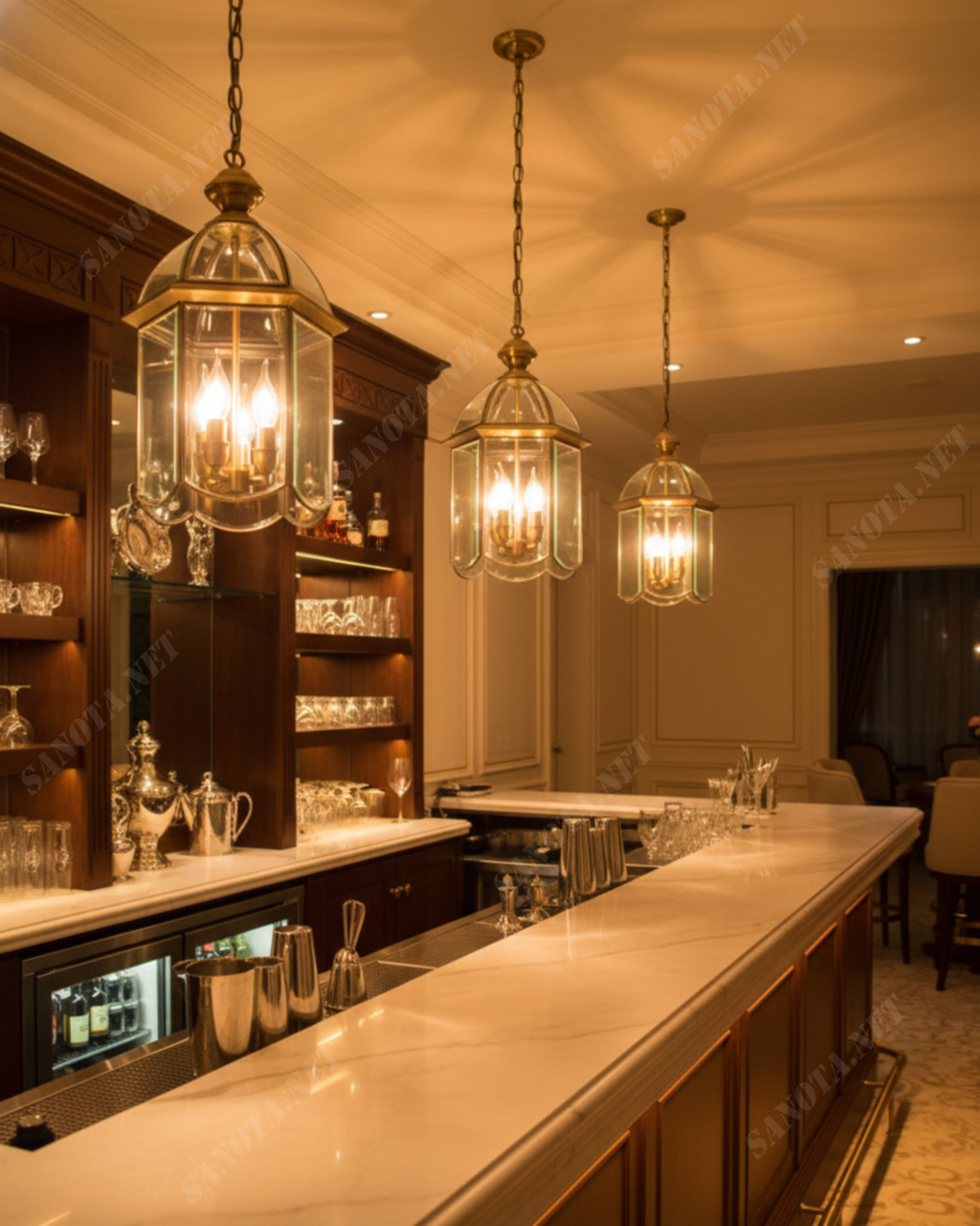Đèn thả đèn lồng kính kiểu Pháp SNT5901 sở hữu kính cao cấp. Lớp kính có độ trong suốt hoàn hảo. Khả năng khúc xạ ánh sáng rất vượt trội. Hiệu ứng lấp lánh bền đẹp theo thời gian. Khung đèn làm từ đồng hoặc hợp kim chống gỉ. Lớp mạ tĩnh điện có độ bền cực cao. Cấu trúc đèn đảm bảo sự chắc chắn. Sản phẩm toát lên vẻ sang trọng, quý phái. Sự kết hợp vật liệu tạo nên sự hoàn hảo.