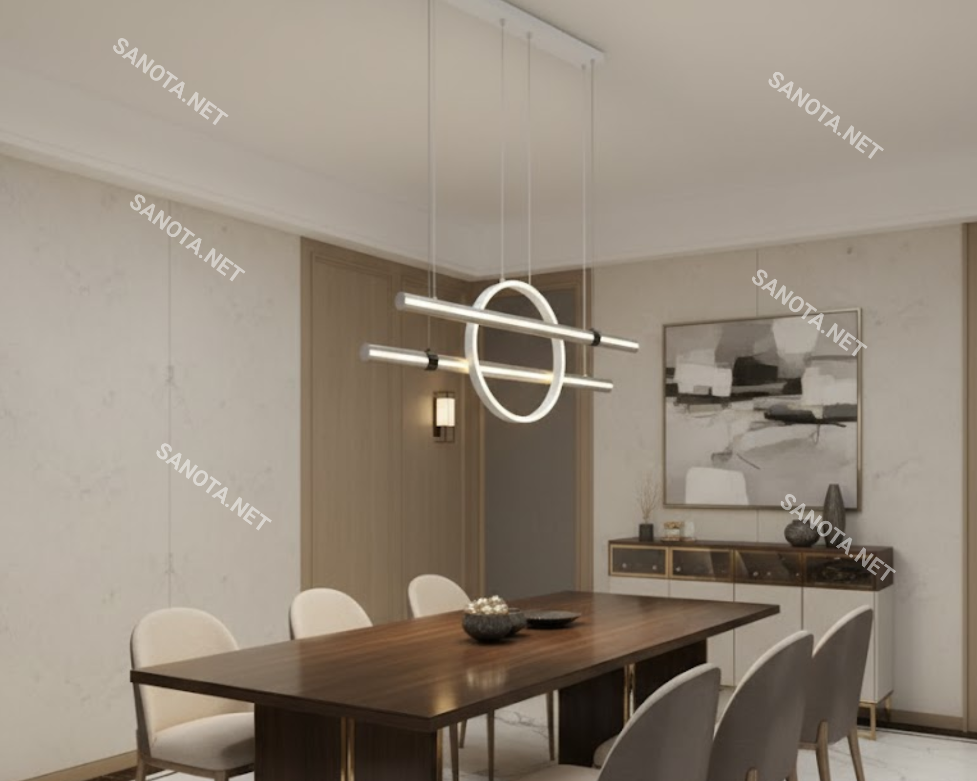 Đèn thả trần hình học tối giản SNT5783 gây ấn tượng với bố cục thanh ngang và vòng tròn độc đáo. Thiết kế tạo điểm nhấn mạnh mẽ cho không gian sống. Công nghệ LED hiện đại giúp ánh sáng ổn định và tiết kiệm điện.
