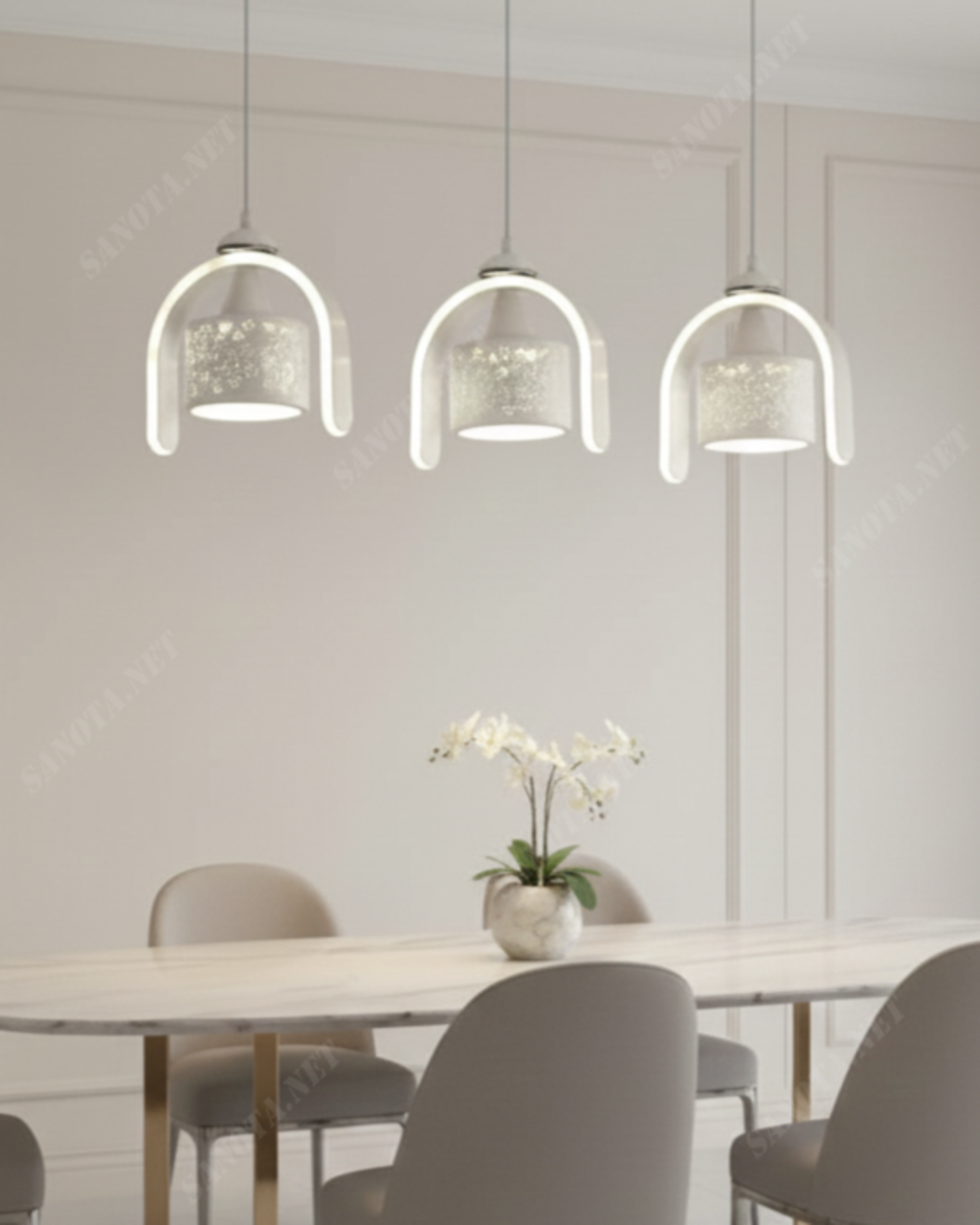 Đèn thả vòm cong hiện đại SNT5799 là tuyệt tác thiết kế độc đáo. Nó tạo điểm nhấn ấn tượng cho không gian sống. Thiết kế vòm cong mang vẻ đẹp tinh tế, mềm mại. Đèn có cấu trúc 3 chao cân đối, rất đẹp mắt. Đèn thả vòm cong này phù hợp nhiều phong cách. SNT5799 khiến không gian sống trở nên đẳng cấp hơn. Đèn thả hiện đại SNT5799 là món trang sức cao cấp.