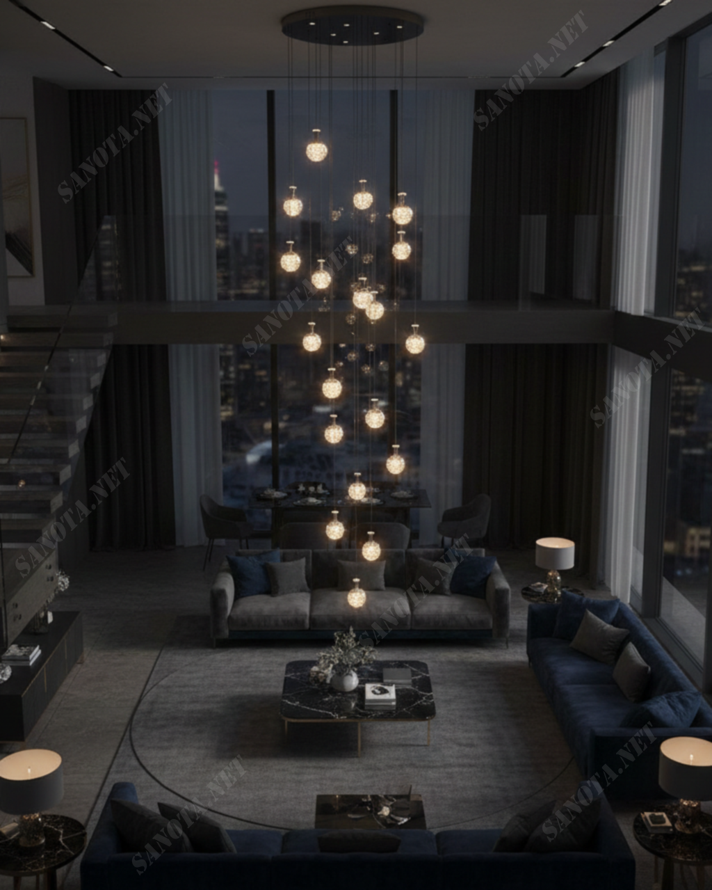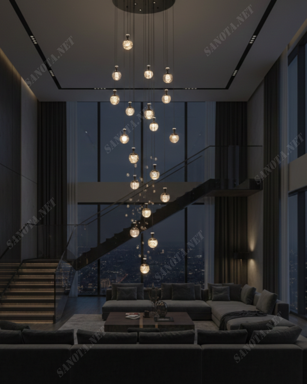 Đèn thông tầng bong bóng pha lê không chỉ là đèn, đó là một tác phẩm nghệ thuật. Hãy để mẫu đèn này biến ngôi nhà bạn thành một cung điện ánh sáng hiện đại.