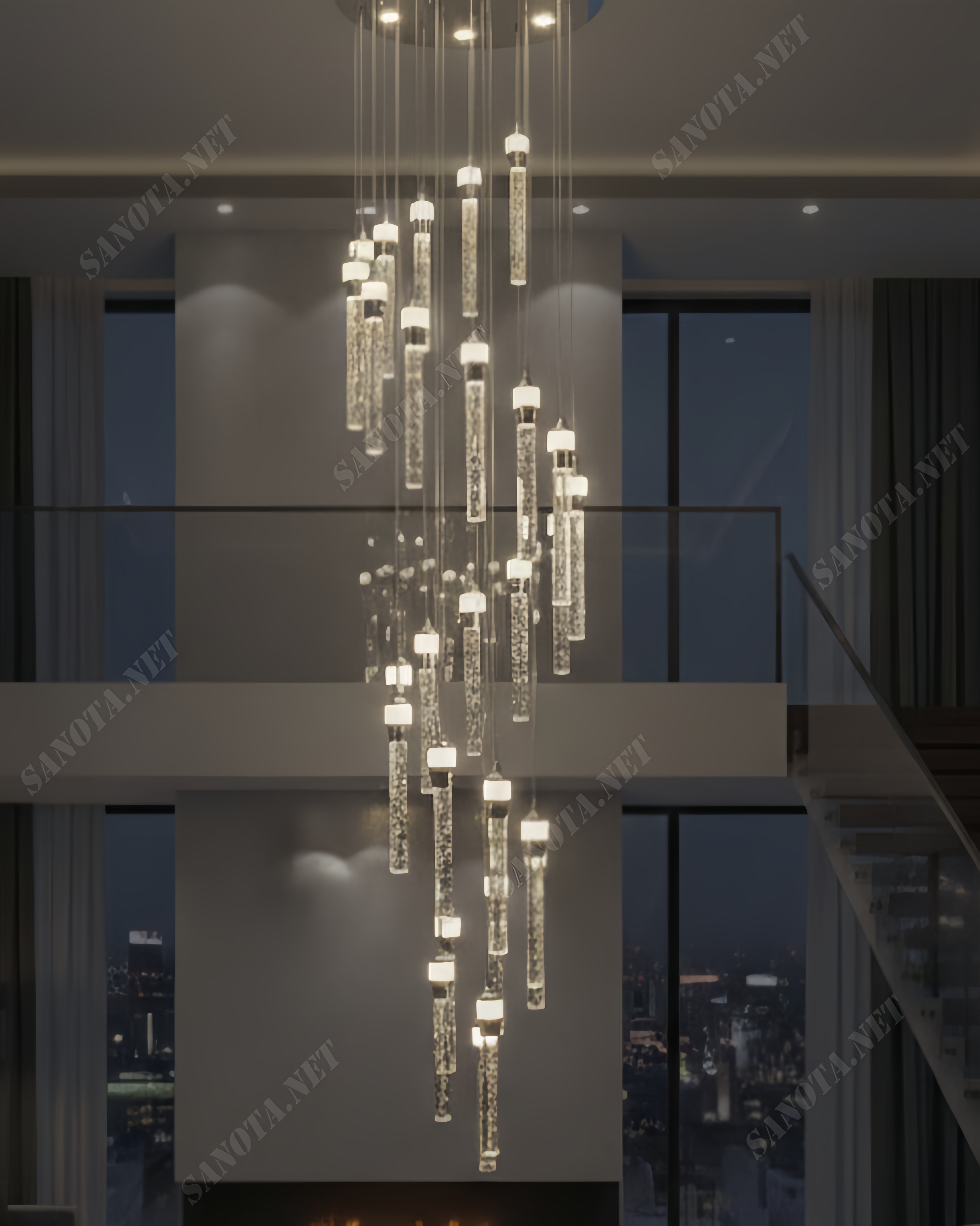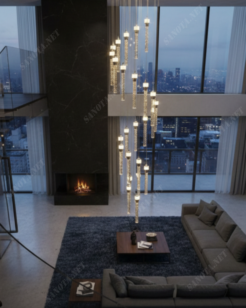 Hãy để đèn thông tầng dải pha lê biến ngôi nhà thành một cung điện ánh sáng. Đây chắc chắn là khoản đầu tư xứng đáng cho không gian sống thượng lưu.