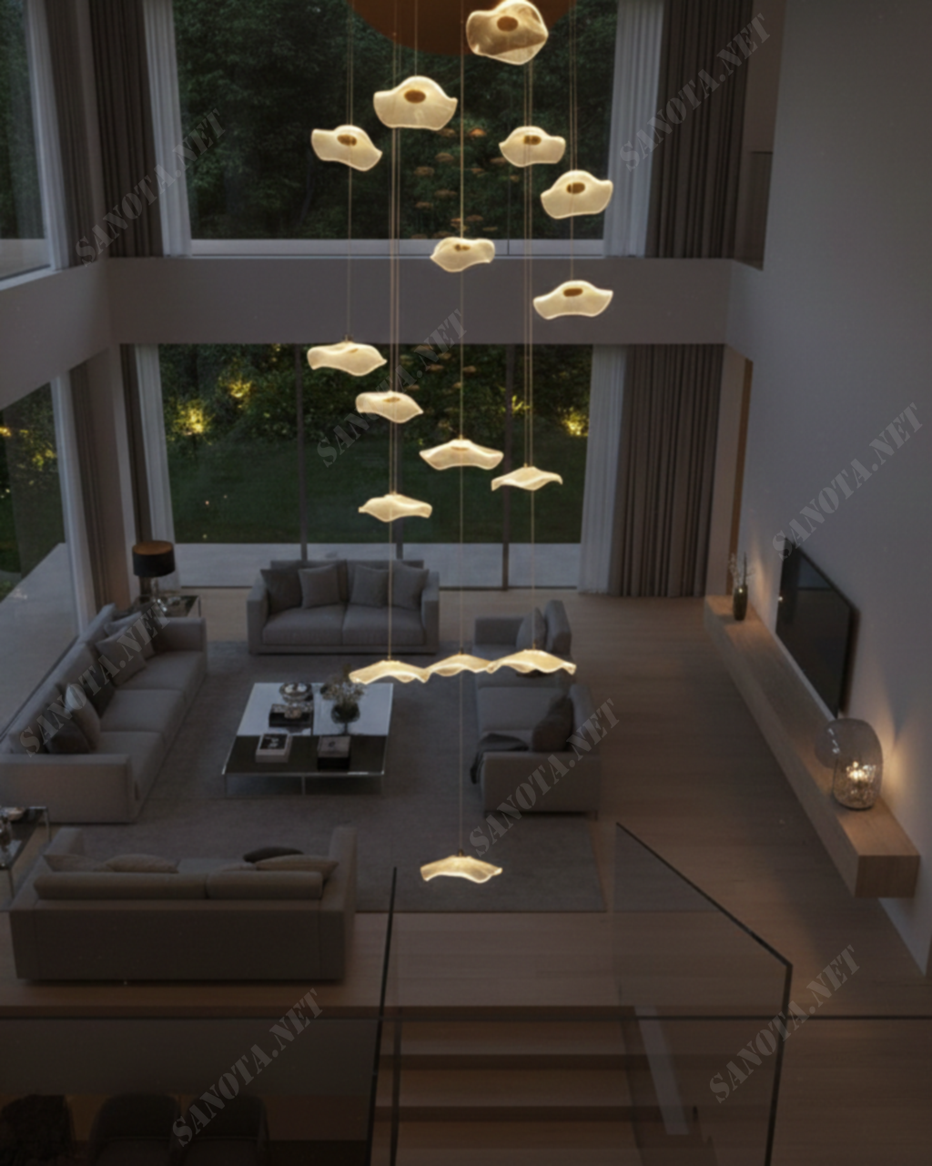 Đèn thông tầng lá hiện đại SNT6608 sử dụng công nghệ LED tiên tiến nhất. Hệ thống đèn LED giúp tiết kiệm điện năng và bảo vệ mắt người dùng. Ánh sáng vàng ấm tạo cảm giác thư giãn và gần gũi. Sản phẩm phù hợp cho phòng khách biệt thự hoặc sảnh cầu thang lớn. Ánh sáng xuyên qua các lớp lá tạo nên những vệt bóng đổ lung linh. Không gian sống sẽ trở nên lung linh và đầy tính nghệ thuật.