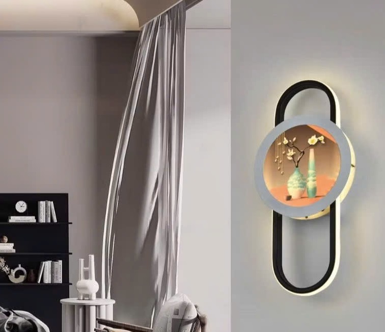 Đèn treo tường trang trí tranh bình hoa gốm mang đến một thiết kế độc đáo. Kết hợp giữa khung oval hiện đại và mặt tròn trung tâm với hình ảnh bình gốm xanh trang trí hoa đào đầy nghệ thuật. Từng chi tiết tinh tế được phối hợp hài hòa, vừa mang hơi thở truyền thống vừa toát lên sự sang trọng đương đại.