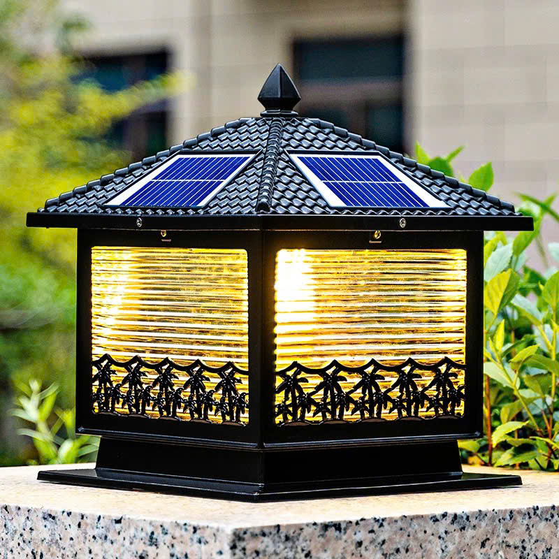 Đèn trụ cổng điểm nhấn hàng cây dừa được thiết kế mái ngói giả cổ kết hợp hoa văn trang trí tinh tế trên phần thân. Tạo nên vẻ đẹp vừa hiện đại vừa truyền thống. Mặt kính trong suốt giúp ánh sáng lan tỏa đều, làm nổi bật lối đi, sân vườn hay cổng nhà. Đây không chỉ là một chiếc đèn, mà còn là một tác phẩm nghệ thuật ngoại thất.