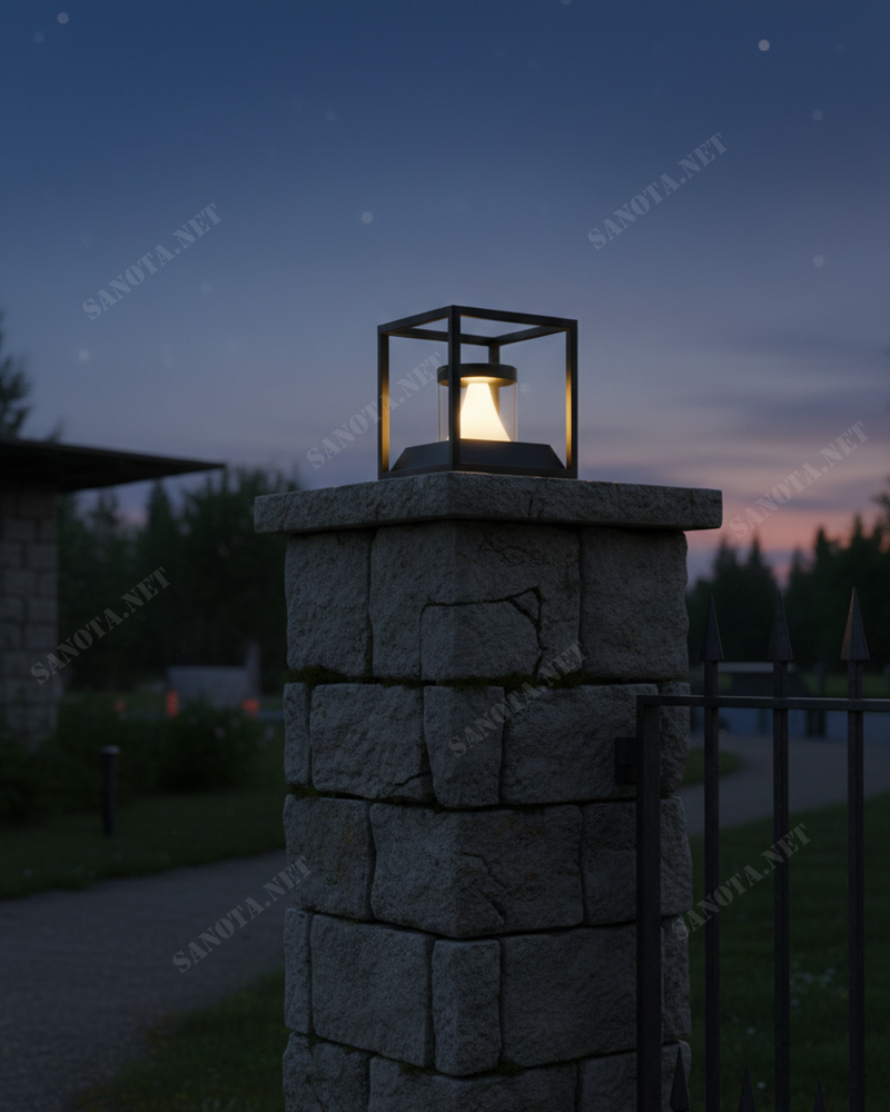 Đèn trụ cổng mang đến một định nghĩa mới về sự sang trọng và vững chãi cho không gian ngoại thất của ngôi nhà bạn. Với thiết kế hình khối hộp vuông vức bao bọc lấy lõi sáng hình nón bên trong. Mẫu đèn này tượng trưng cho sự bảo vệ và soi sáng bền bỉ.
