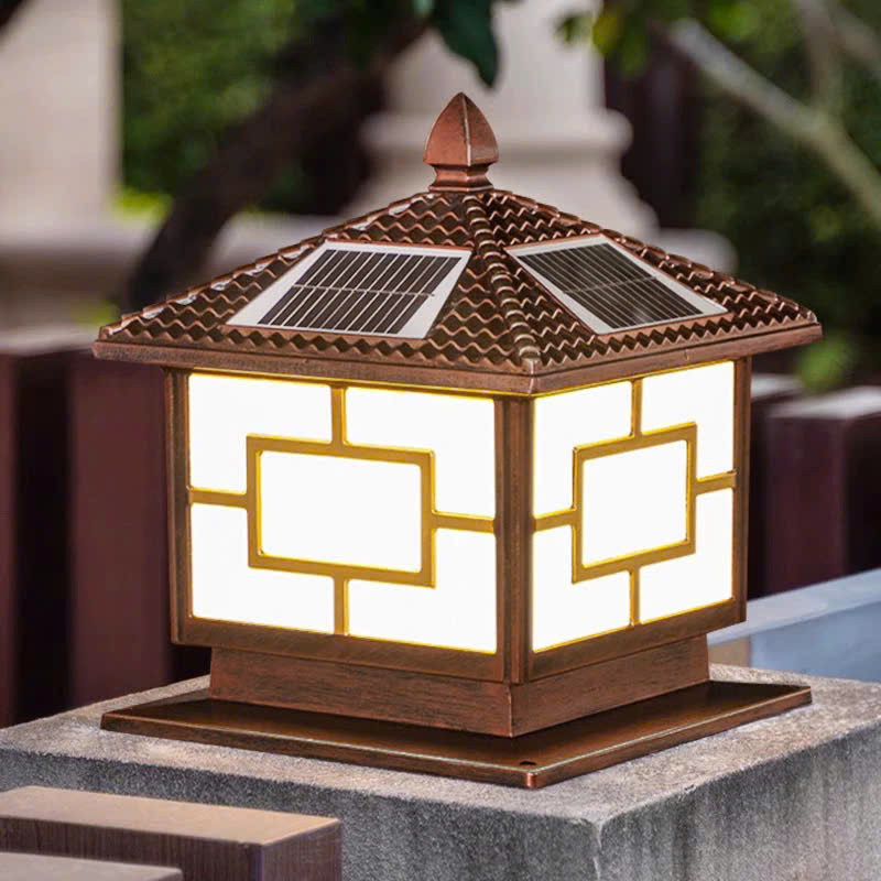 Đèn trụ cổng mái ngói được thiết kế với khung vuông chắc chắn, nổi bật bởi các họa tiết hình học tinh xảo, tạo cảm giác cân đối và hài hòa. Mái ngói giả cổ cùng chóp nhọn thanh lịch giúp tổng thể sản phẩm trở nên sang trọng. Phù hợp với nhiều phong cách kiến trúc khác nhau từ hiện đại đến truyền thống.