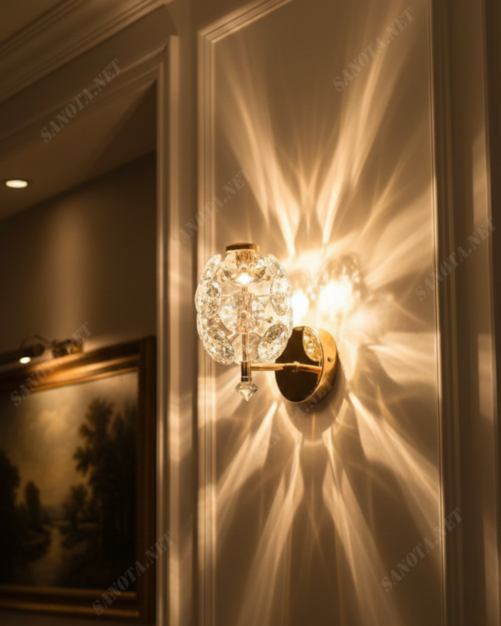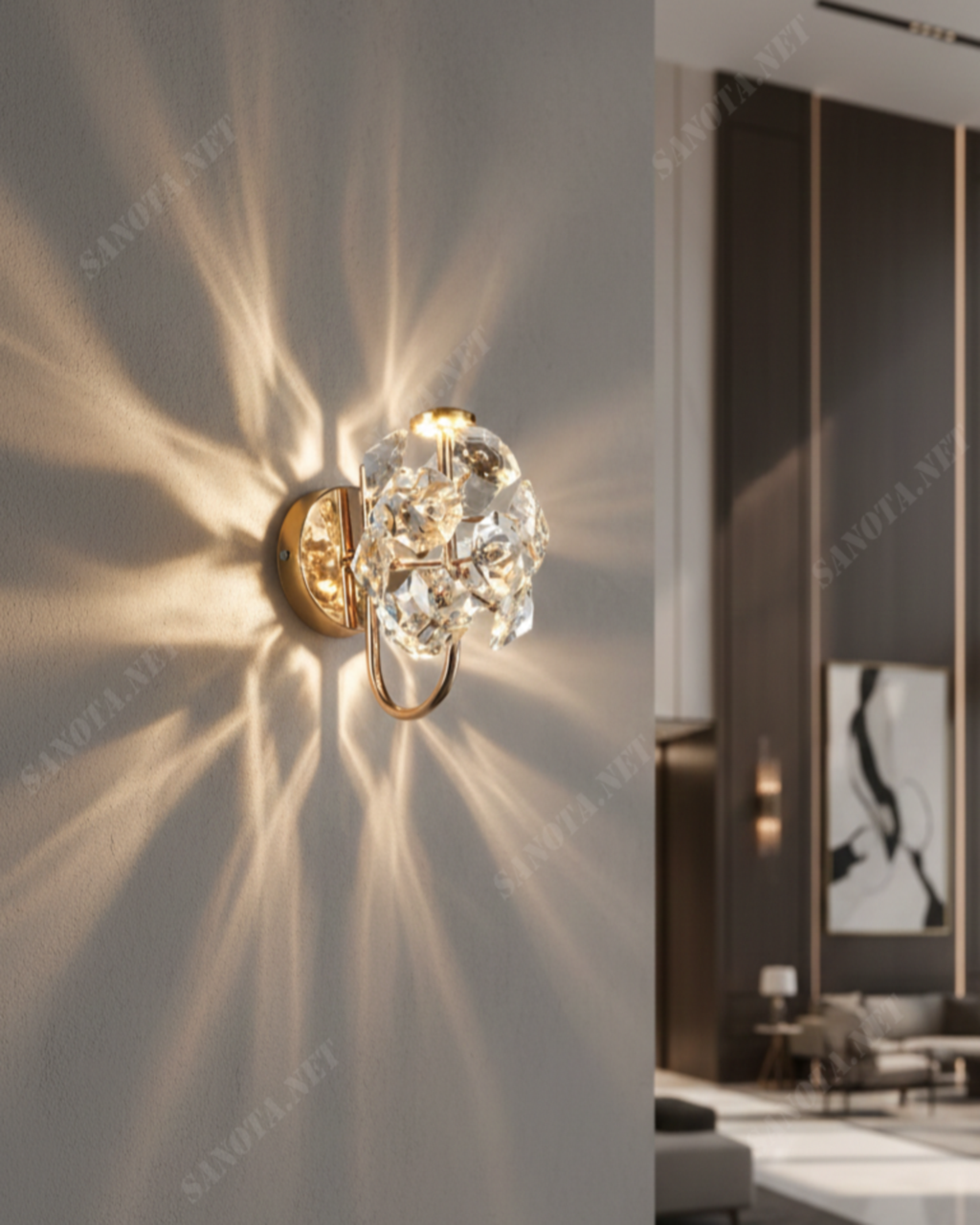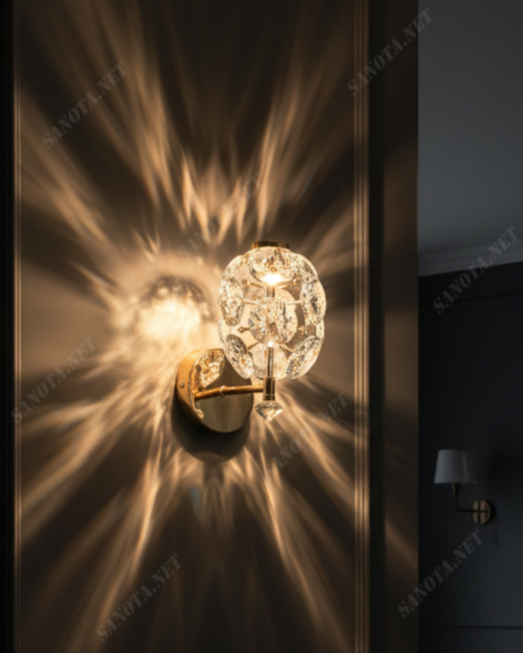 Đèn sử dụng công nghệ chiếu sáng hiện đại, tiết kiệm điện năng tối đa. Ánh sáng xuyên qua lớp pha lê tạo nên những vệt sáng huyền ảo trên tường. Đây là điểm nhấn thị giác mạnh mẽ cho mọi không gian kiến trúc.\