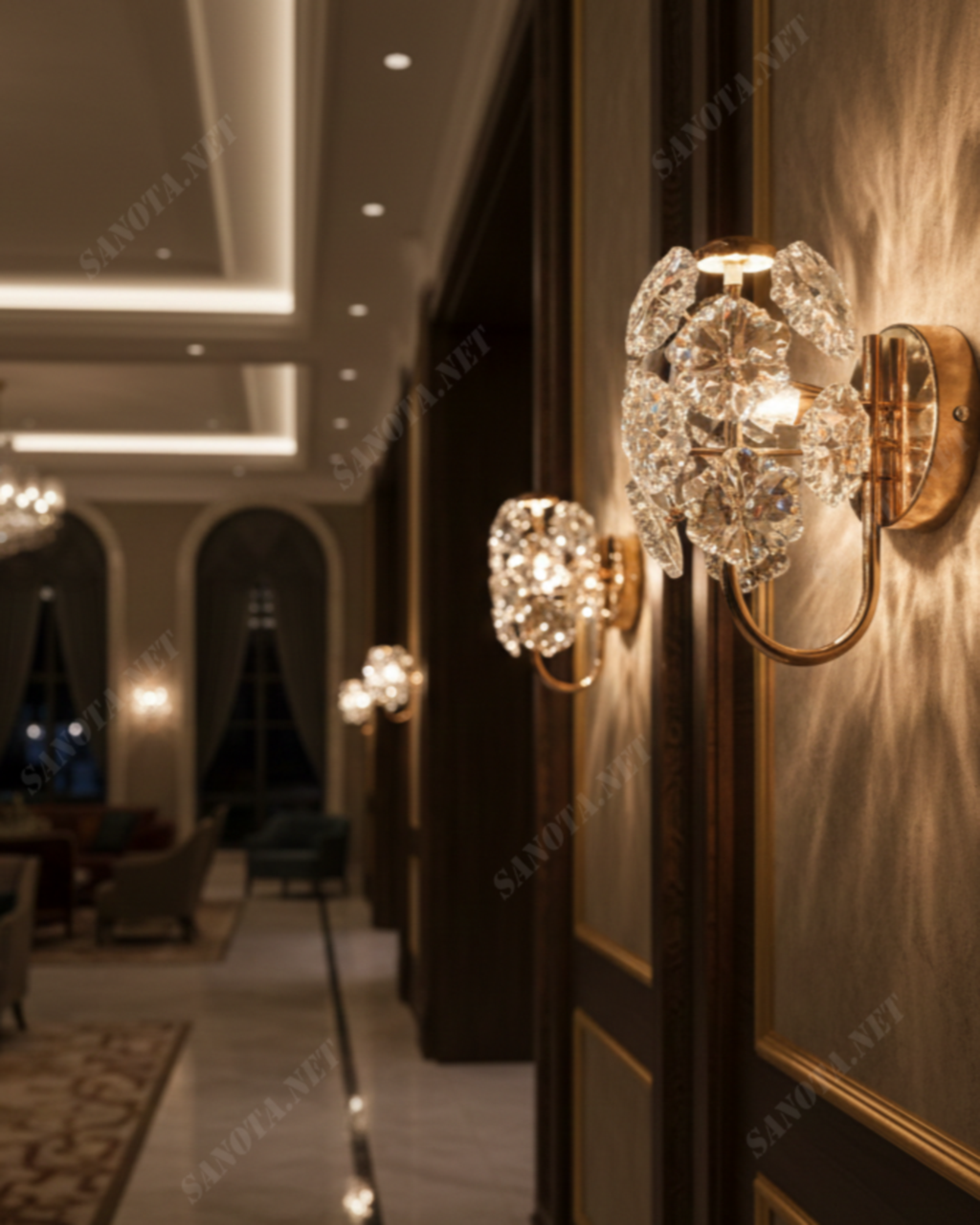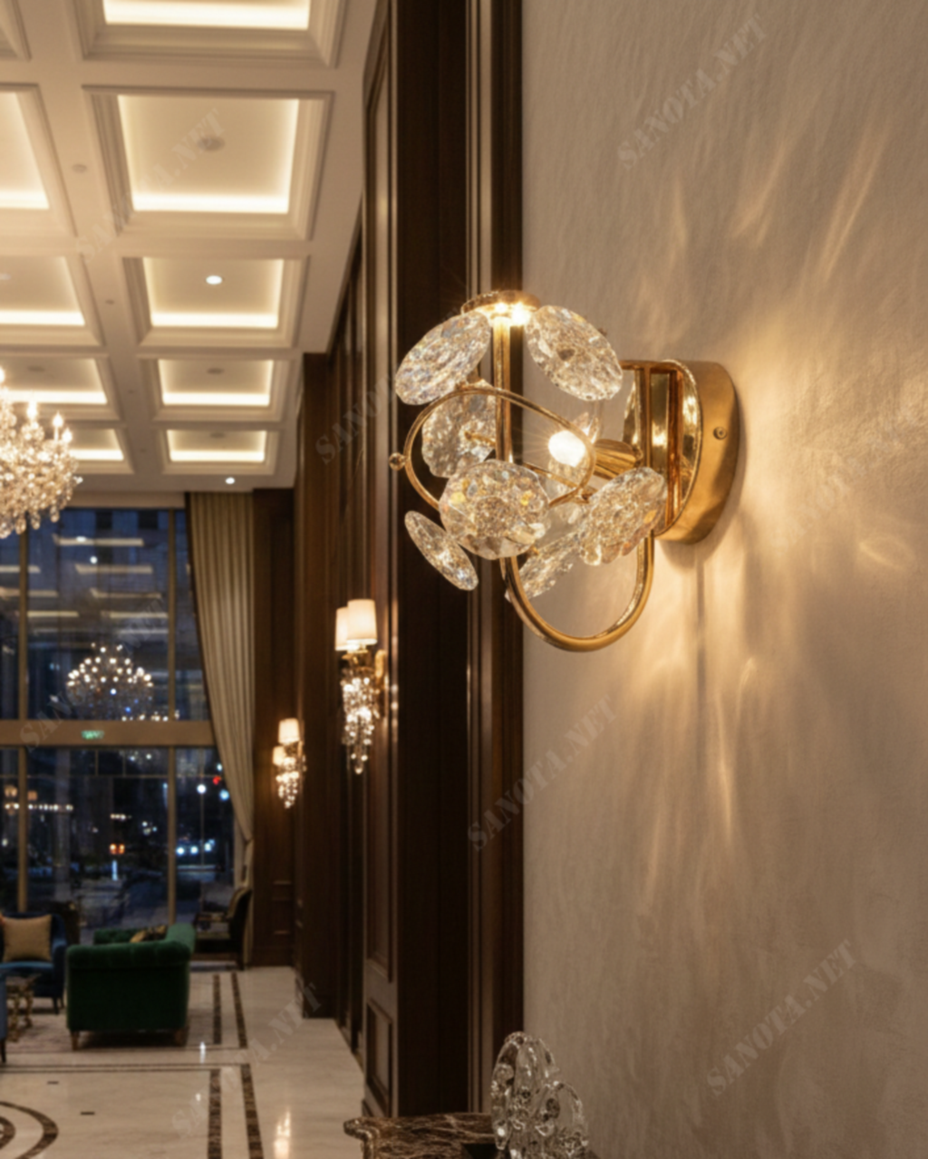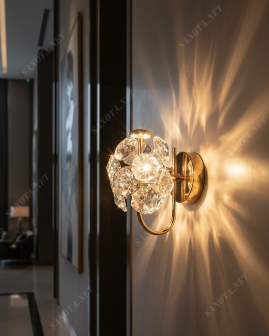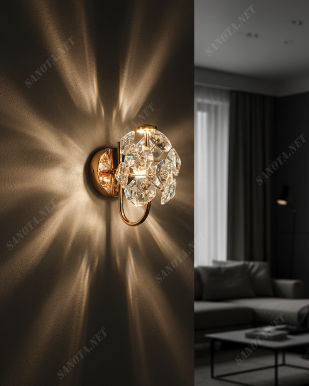 Đèn sử dụng công nghệ chiếu sáng hiện đại, tiết kiệm điện năng tối đa. Ánh sáng xuyên qua lớp pha lê tạo nên những vệt sáng huyền ảo trên tường. Đây là điểm nhấn thị giác mạnh mẽ cho mọi không gian kiến trúc.\