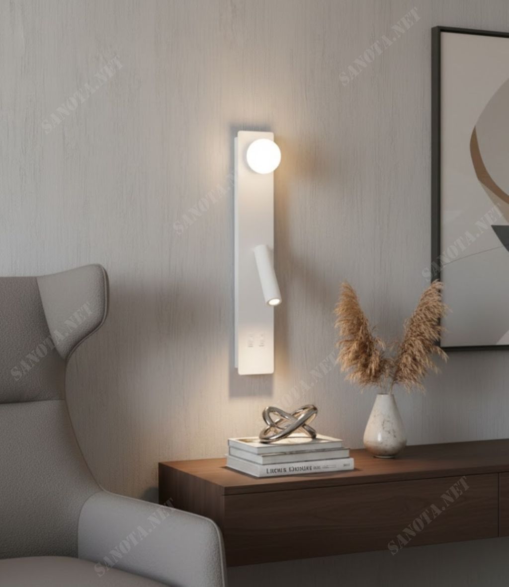Đèn tường đầu giường hiện đại là sự kết hợp tinh tế giữa ánh sáng thư giãn và hình khối tối giản. Mang đến một không gian nghỉ ngơi sang trọng nhưng vẫn ấm áp. Thiết kế đặt dọc theo mảng tường tạo hiệu ứng thị giác thanh thoát. Phù hợp cho những phòng ngủ theo đuổi phong cách tinh gọn, nhẹ nhàng và đầy tính thiền định.
