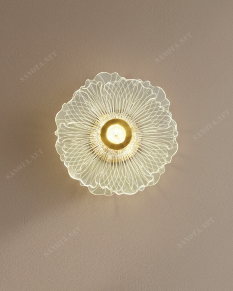 Mẫu đèn tường được thiết kế dựa trên hình ảnh một đóa hoa đang bung nở rực rỡ. Chiếc đèn mang lại vẻ đẹp thuần khiết và tràn đầy sức sống. Với kiểu dáng tròn đầy đặn, mẫu đèn này rất phù hợp để trang trí cho những mảng tường trống trong phòng khách hoặc tạo cảm giác chào đón ngay tại khu vực sảnh vào nhà.