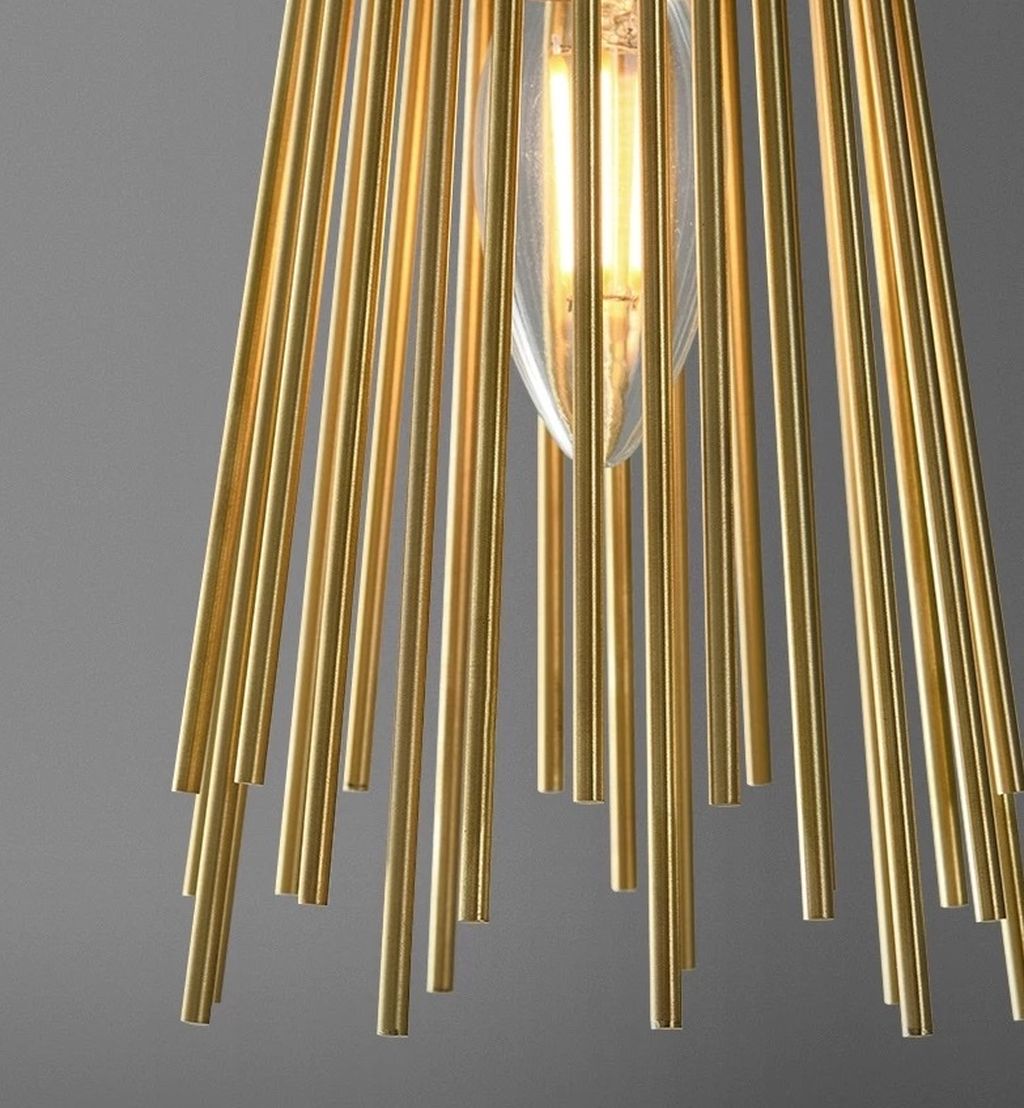 Thiết kế độc đáo: Các thanh kim loại được sắp xếp đan xen đối xứng. Tạo hiệu ứng ánh sáng lung linh, huyền ảo khi bật đèn, đồng thời mang lại cảm giác ấm cúng và sang trọng.