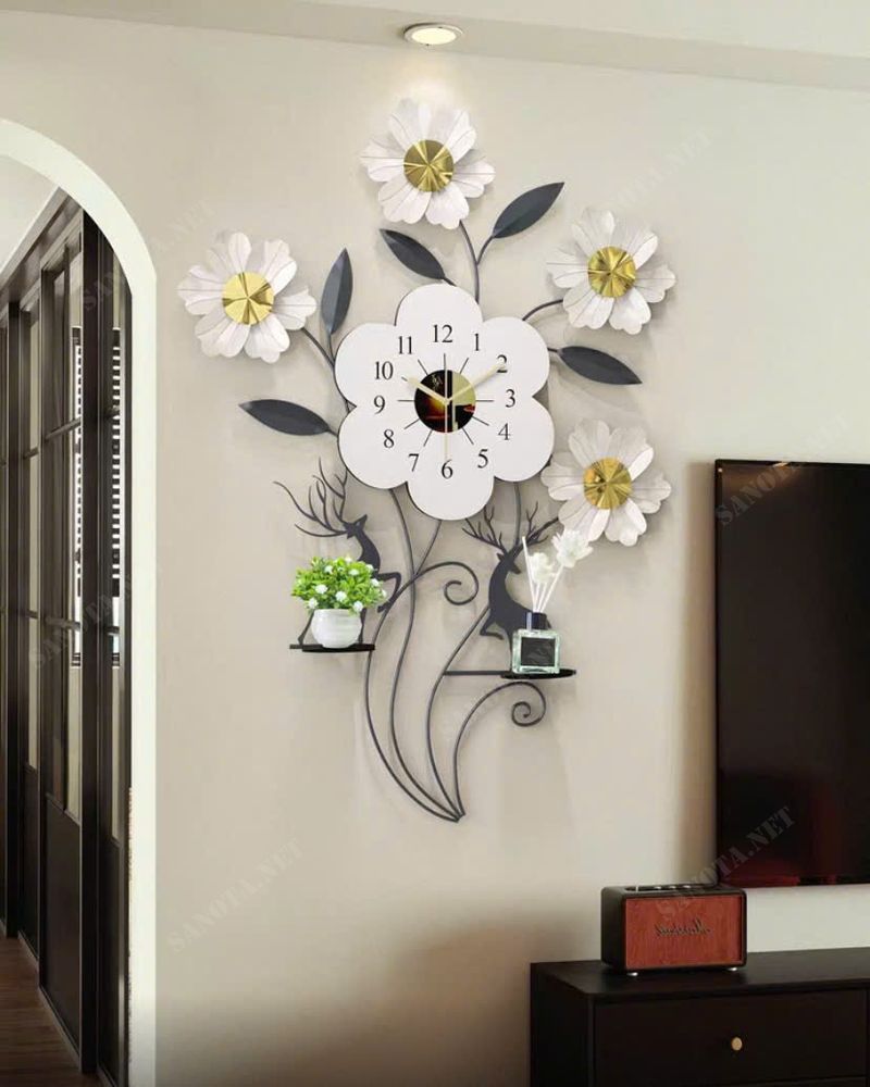 Cả hai mẫu đều có chi tiết trang trí đặc sắc là hình ảnh con hươu uyển chuyển và hai chiếc kệ nhỏ treo lơ lửng. Dùng để đặt các vật phẩm như chậu cây xanh nhỏ và lọ khuếch tán tinh dầu, tăng thêm tính tiện dụng và thẩm mỹ cho chiếc đồng hồ.