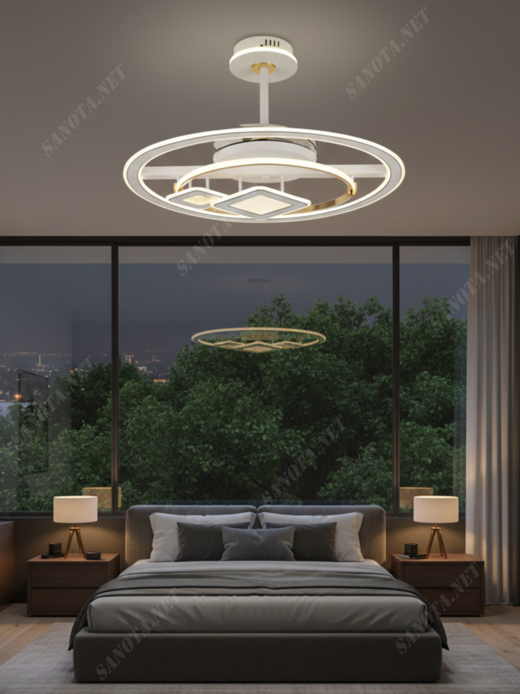 Quạt trần đèn Vòng Bao Vuông SNT6514